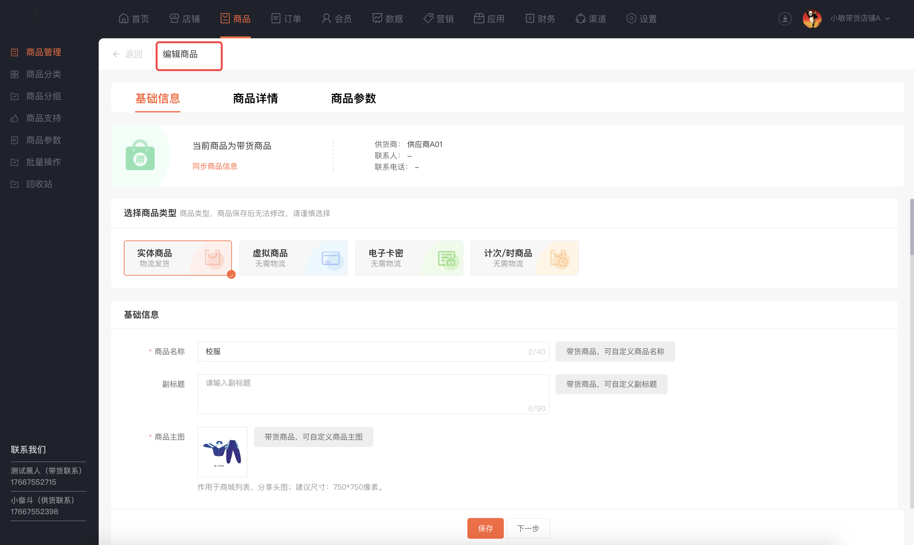 带货商品可自定义商品名称,副标题,主图,轮播图,商品短标题,首图视频,视频封面图