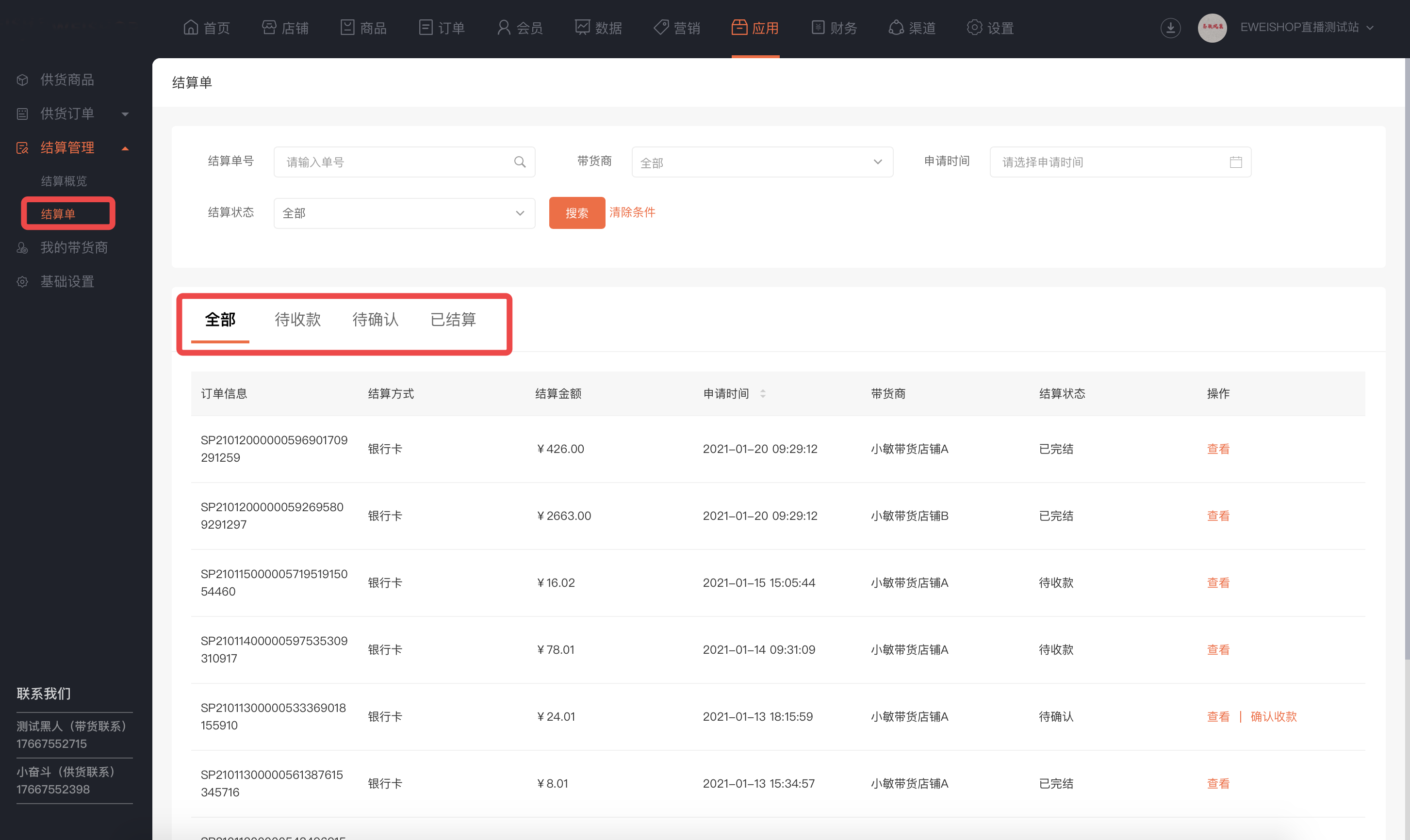 目前可选择“带货商收款”模式:带货出售商品由带货商收款,供货商和带货商申请结算