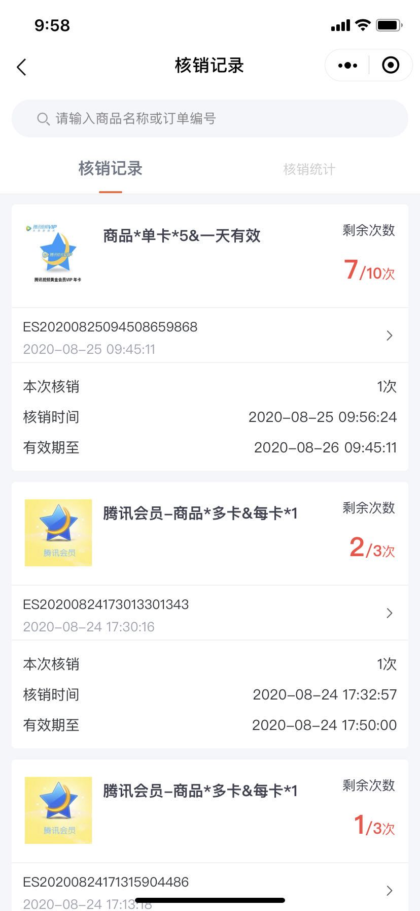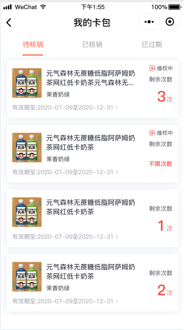 多卡模式:一单购买多件商品时,生成多张核销卡。