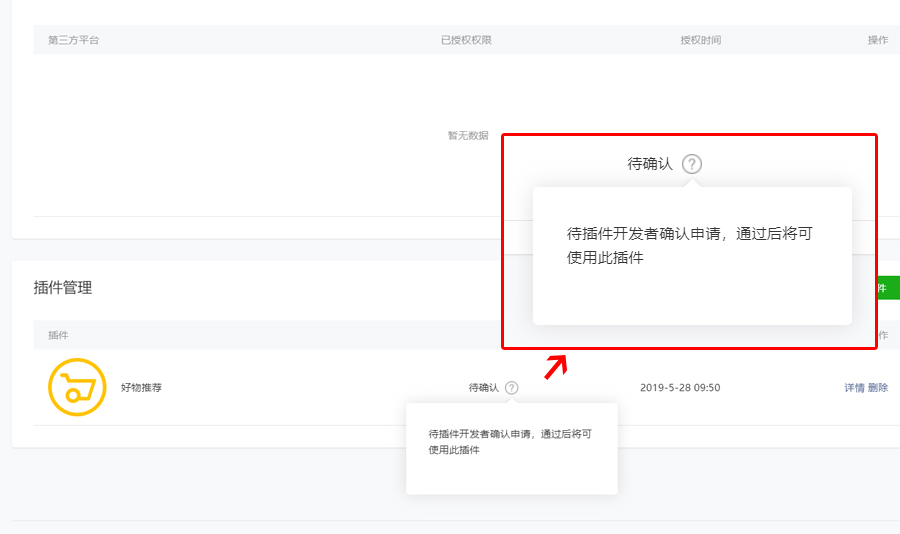 3)管理端更新发布后,需在业务端更新提交,审核成功后功能可用。可用前提为:业务端已购买此插件。