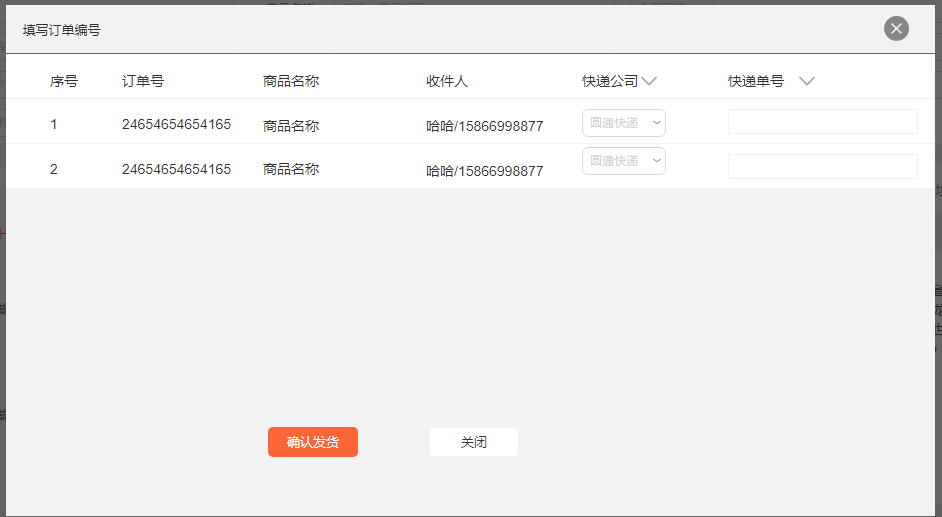 点击“确定”更改订单状态的时候,是需要填写订单的快递公司和物流单号,参见下图: