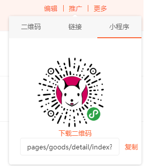 创建商品之后,在出售商品列表中点击推广,可以获取商品页面路径。