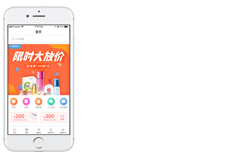 导航为:商城页面的底部菜单,可以让会员点击相应的位置快速进入页面。