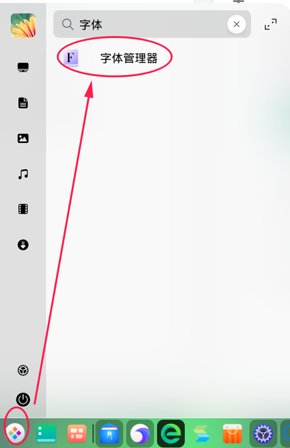 3)在UOS启动器中搜索字体管理器,并打开字体管理器;