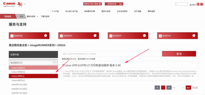 找到佳能官网,按照下图找到该打印机型号驱动:
