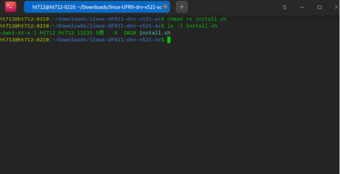 解压压缩包后,进入到解压目录内,如图所示,赋予install.sh执行权限,可用ls -l install.sh查看。