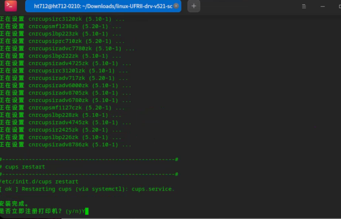 当提示是否注册打印机时,输入Y