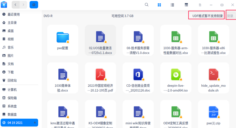 问题原因:win下默认刻录使用的是UDF格式,而UOS系统使用的是ISO9660格式。由于 UDF 文件格式与 ISO9660 文件格式的兼容性问题,导致 UOS 下无法识别。
