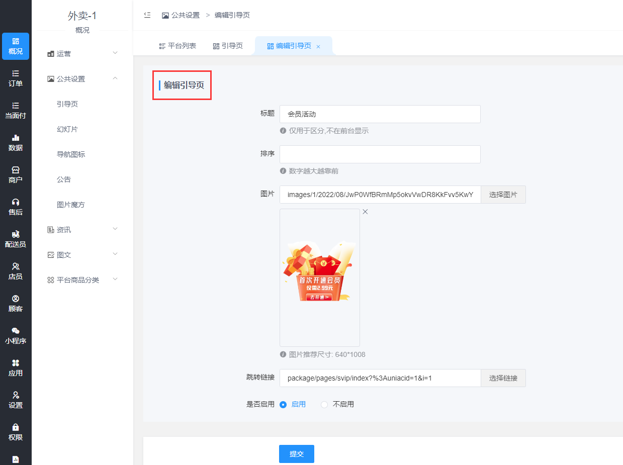 **进入首页会提示,相当于全屏引导页、平台装修自定义页面的启动图组件。**