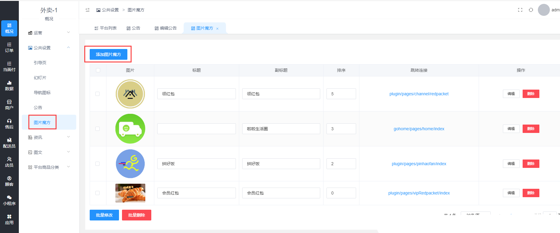 - 平台入口/商家管理入口/商家入驻入口/配送员入口
