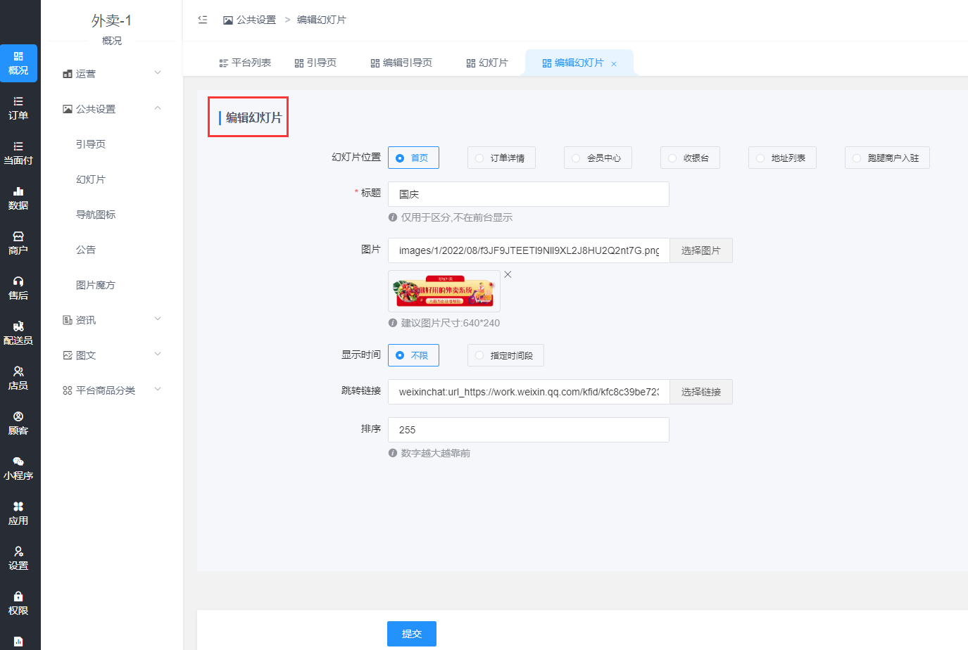 **首页幻灯片广告,相当于平台装修自定义页面里的图片轮播组件**