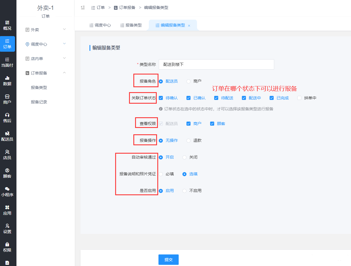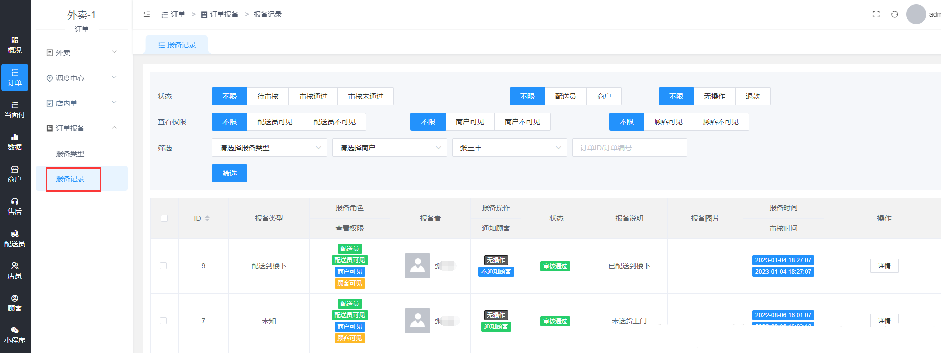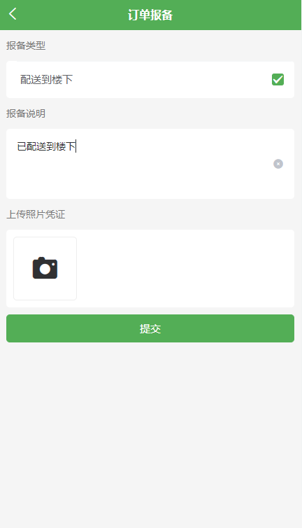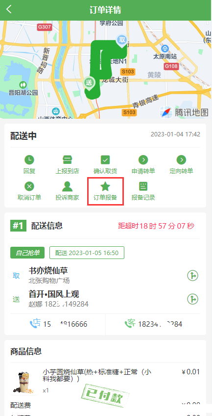 ## **配送员或商户可以进行订单报备,记录订单具体情况。**