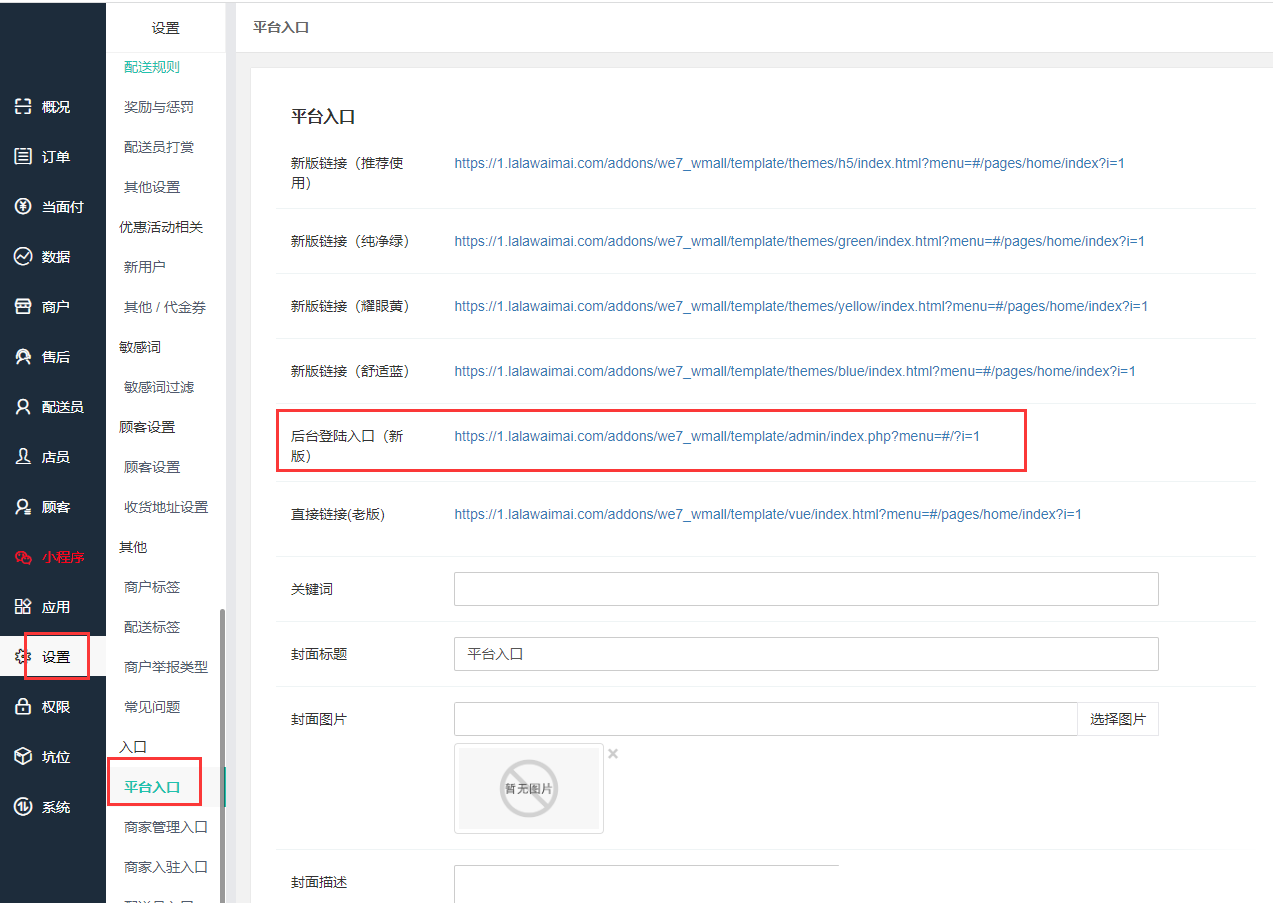 - 平台入口/商家管理入口/商家入驻入口/配送员入口