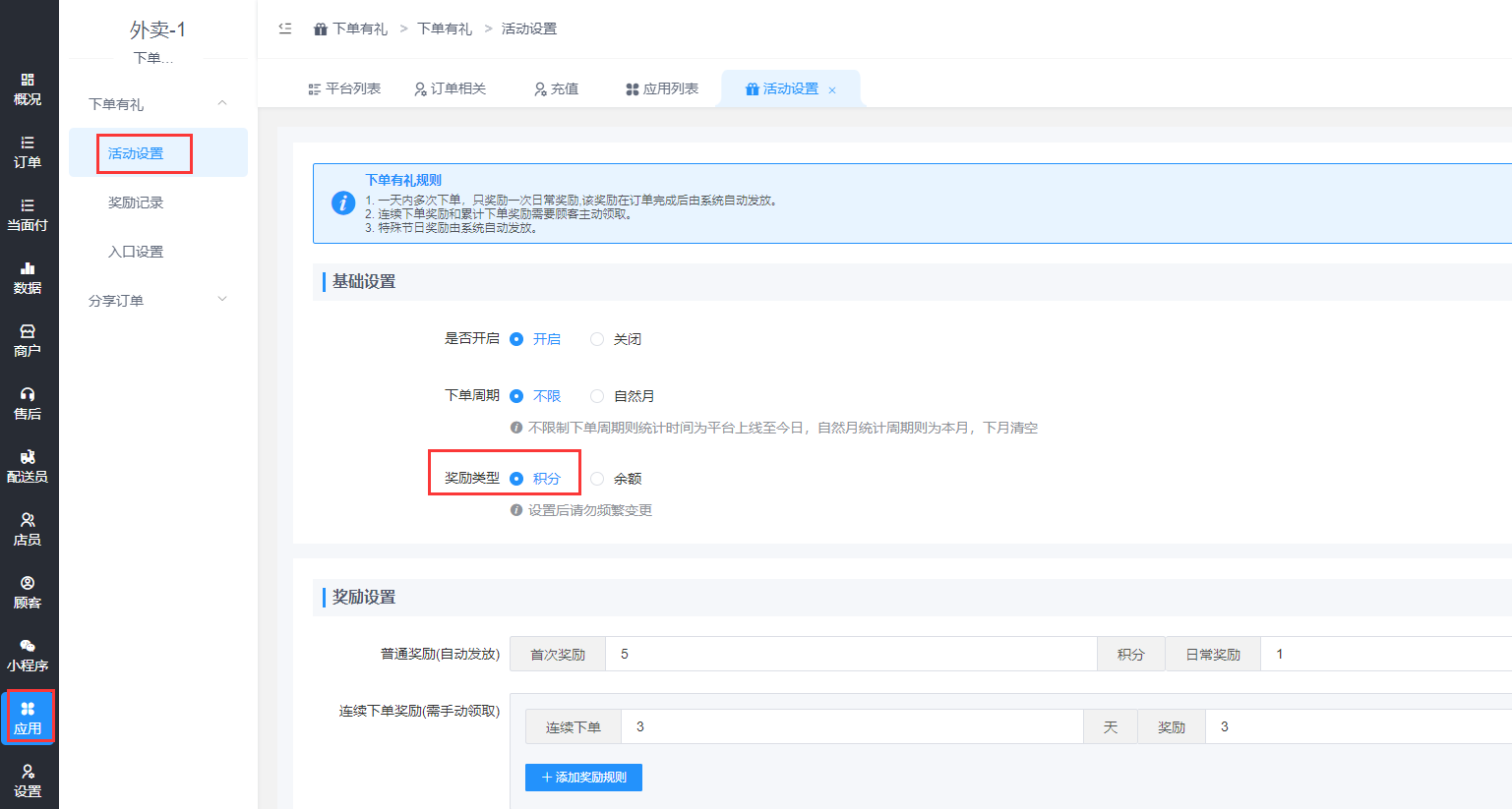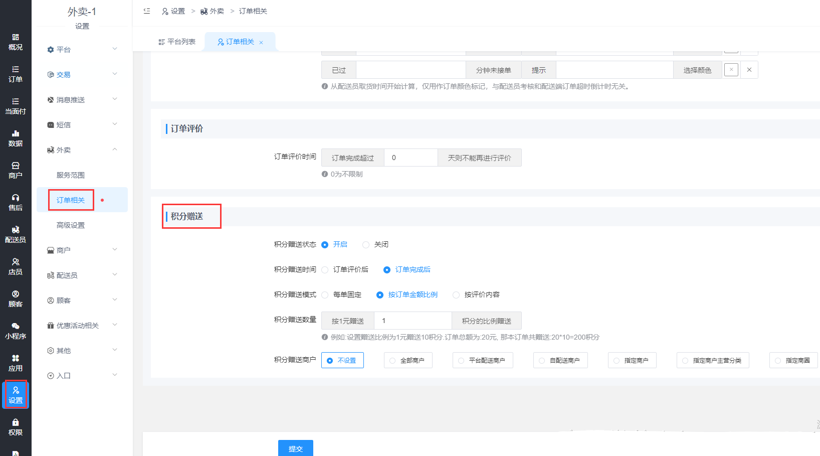 **总平台后台设置-交易-充值,余额充值可以赠送积分**