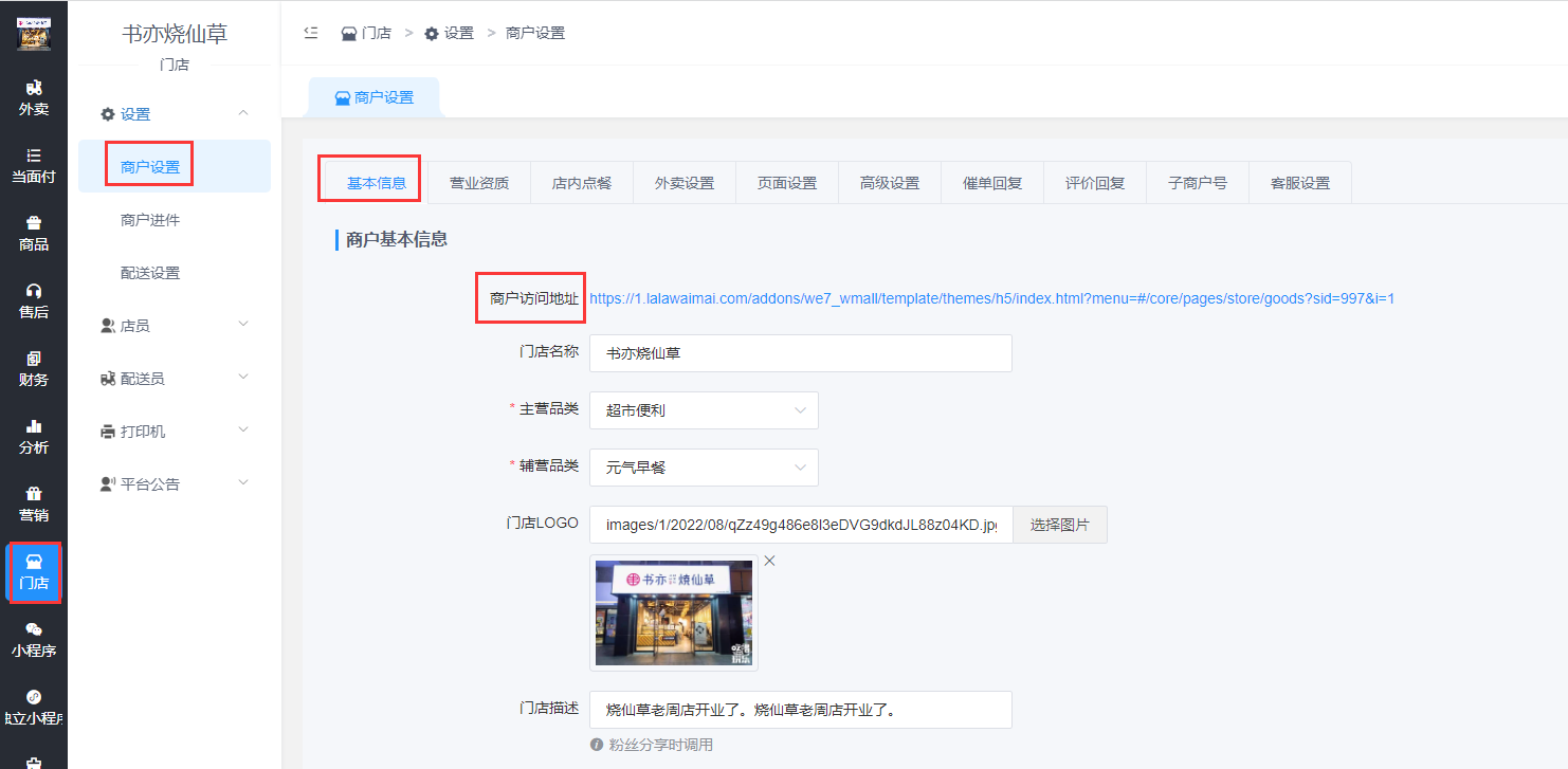 **进入商户后台,门店-商户设置-基本信息-商户访问地址**