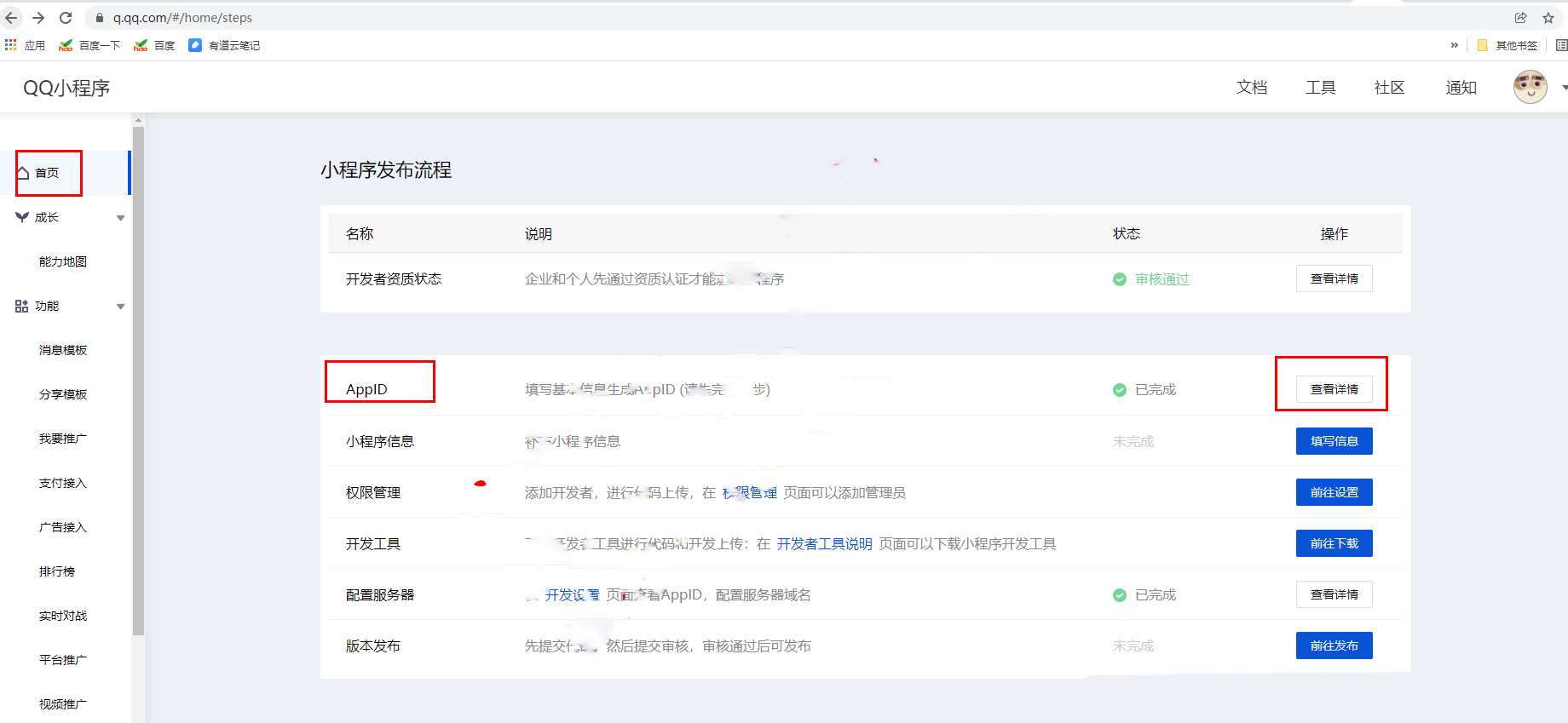 **登录[QQ小程序后台](https://q.qq.com/#/)**