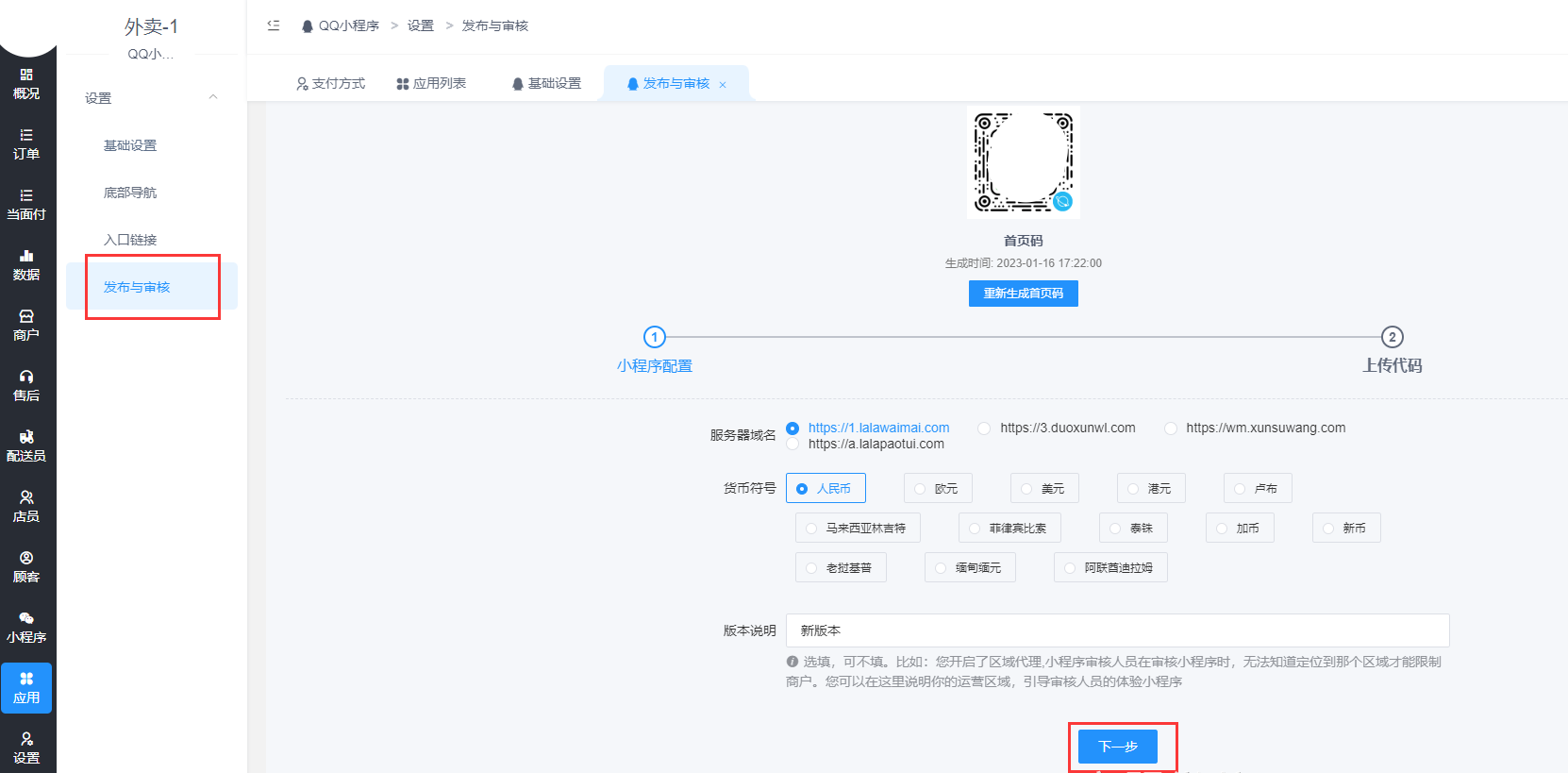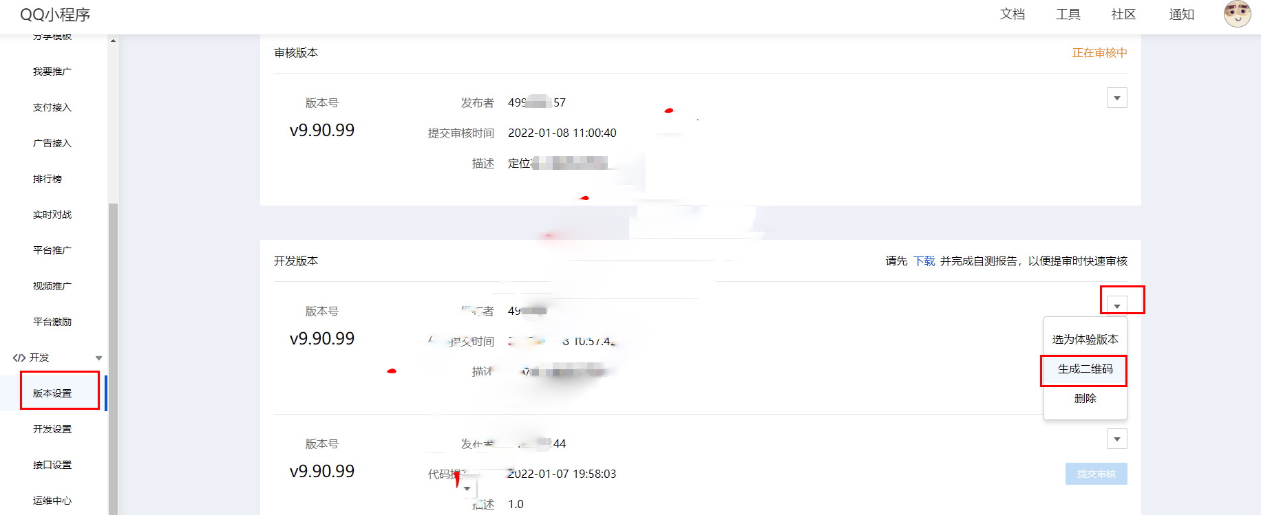 **进入QQ小程序后台,版本管理-开发版本,点击生成二维码,扫码体验看下,可以正常进入,下单没有问题,进行下一步**