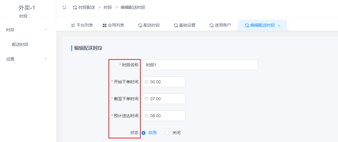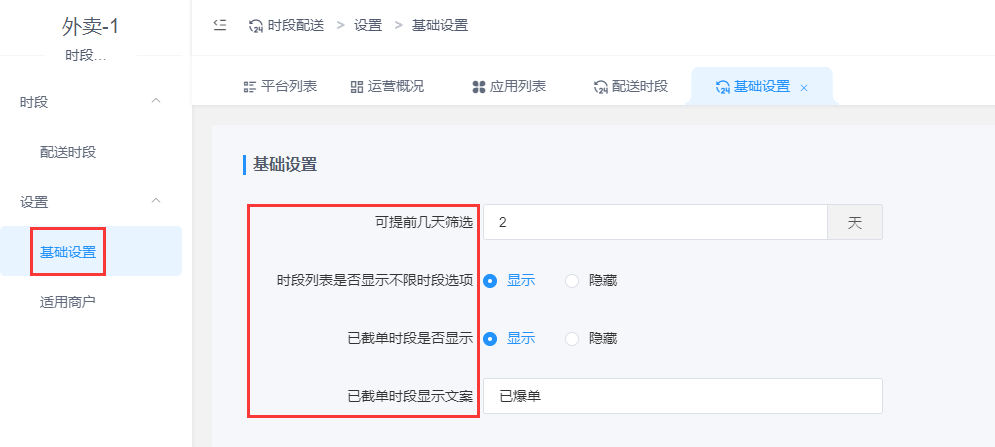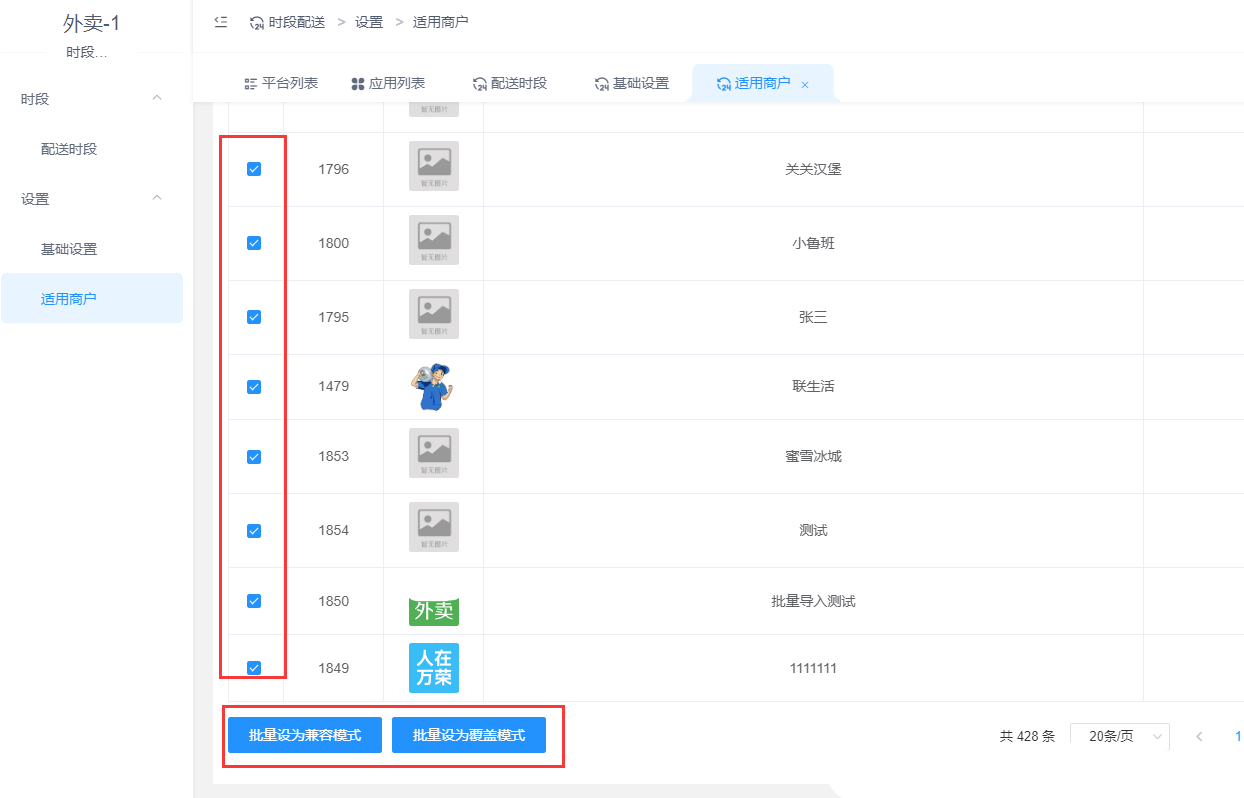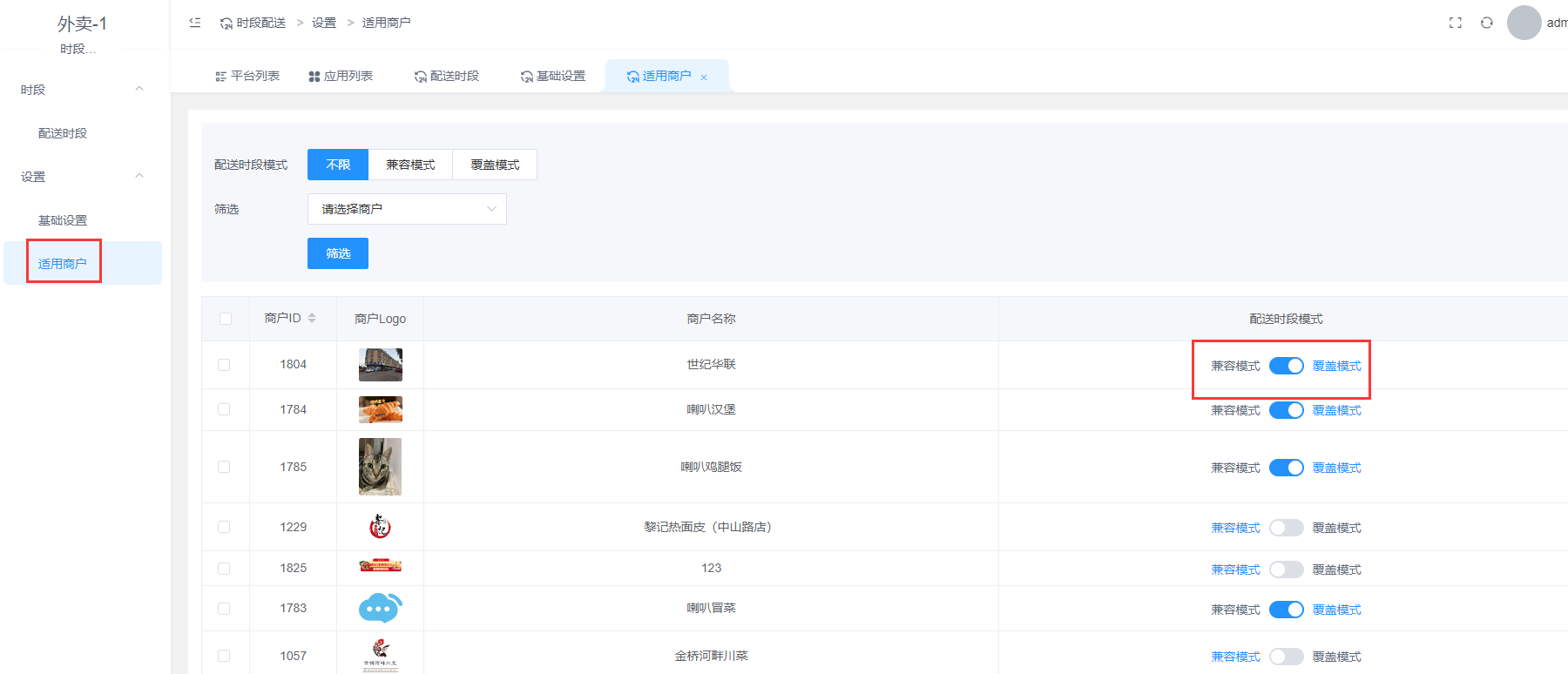 覆盖模式: 固定配送时段全部覆盖商户设置的配送时间段**