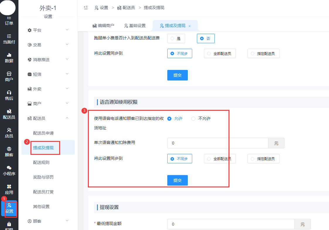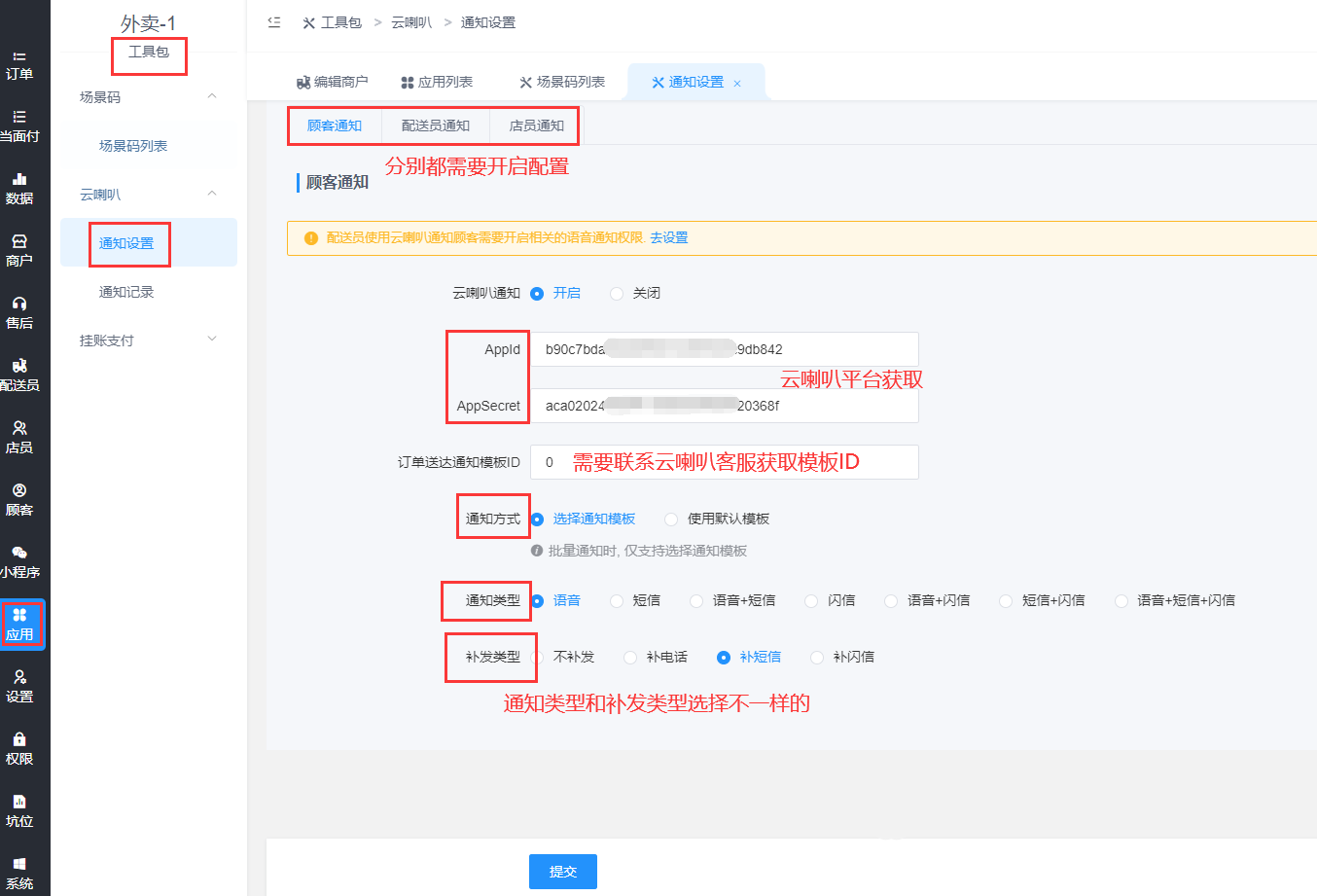 **外卖单配送员送达后语音通知顾客也需要开启**