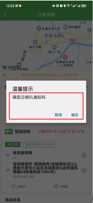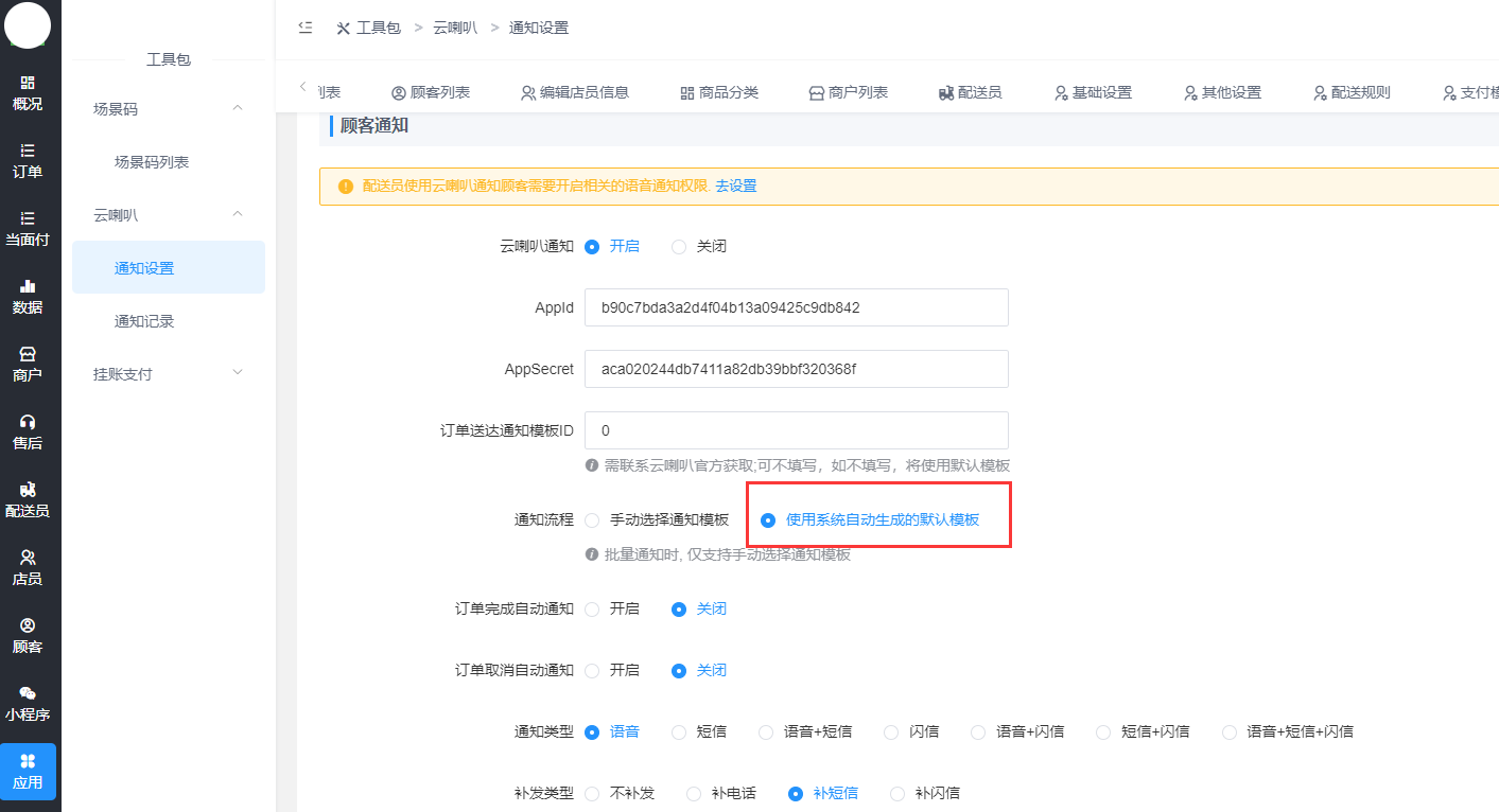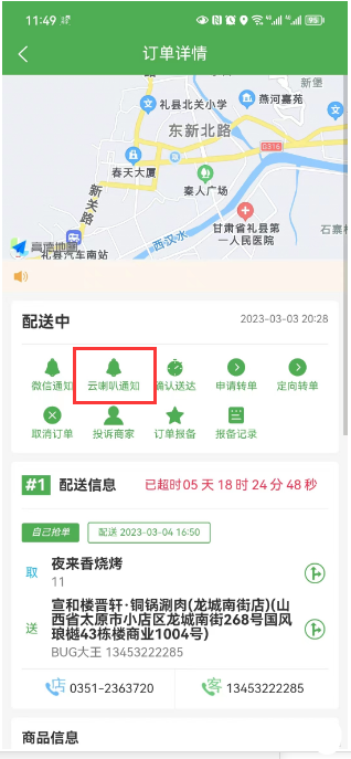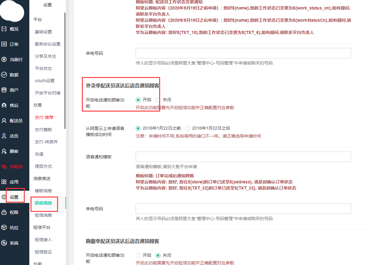 >[info] **功能: 通过云喇叭电话/短信/彩信通知顾客、配送员和店员**