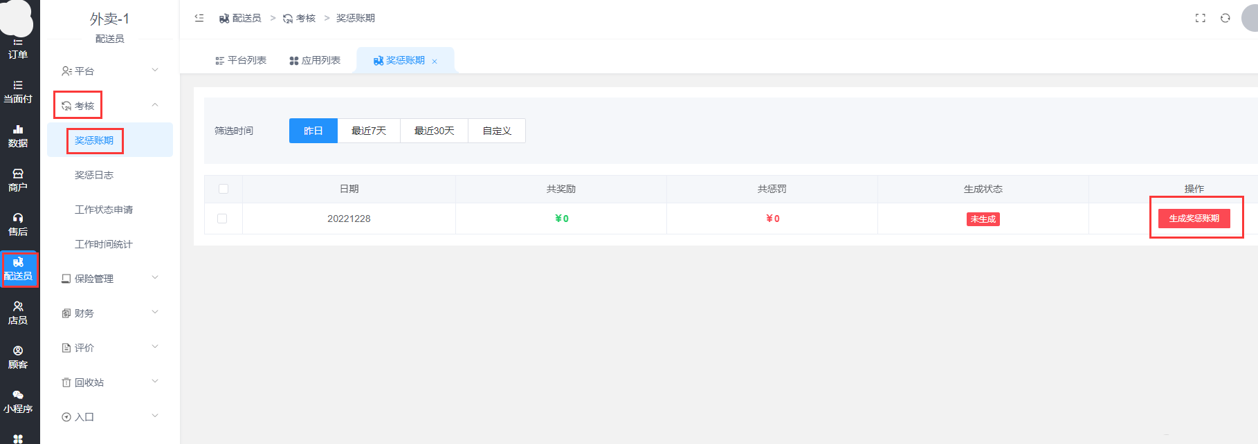 配送员-考核-奖惩账期