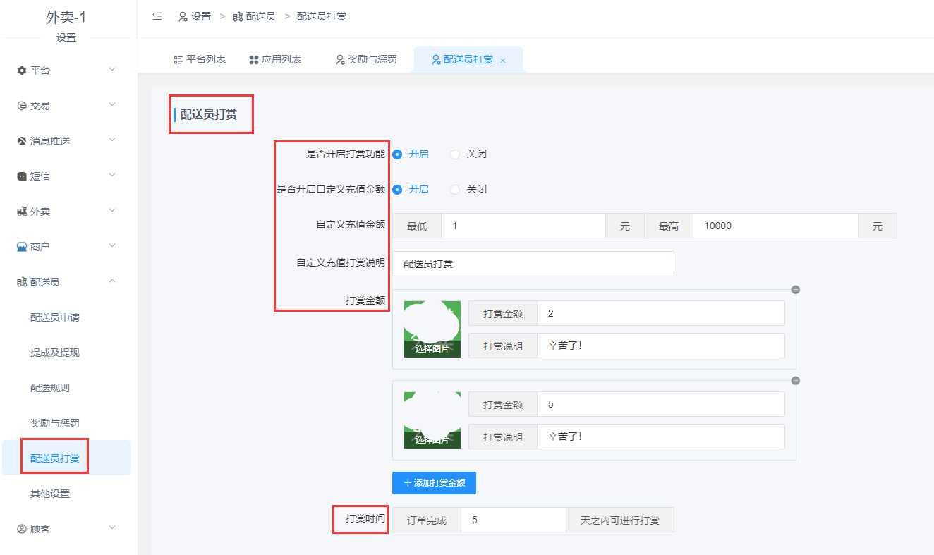 # **3.配送员打赏**