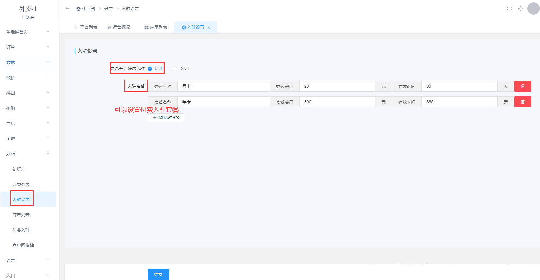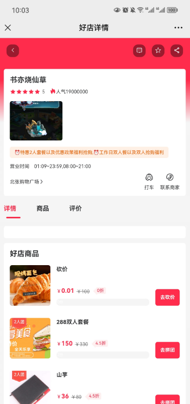 **用来给商家做推广(添加砍价拼团抢购活动),可以只入驻为好店,不做外卖**