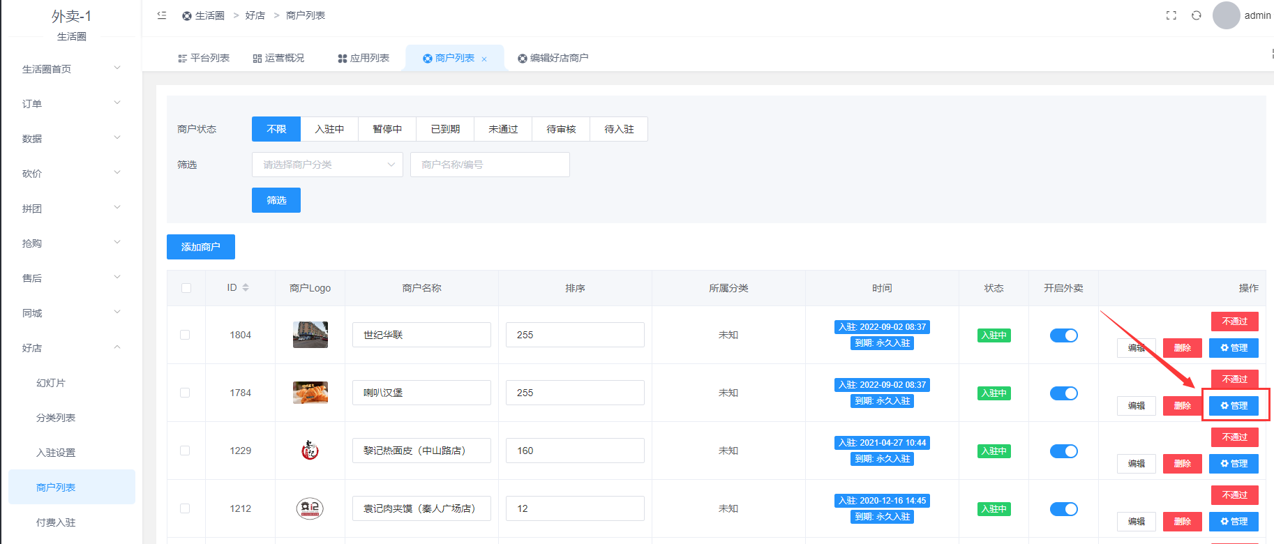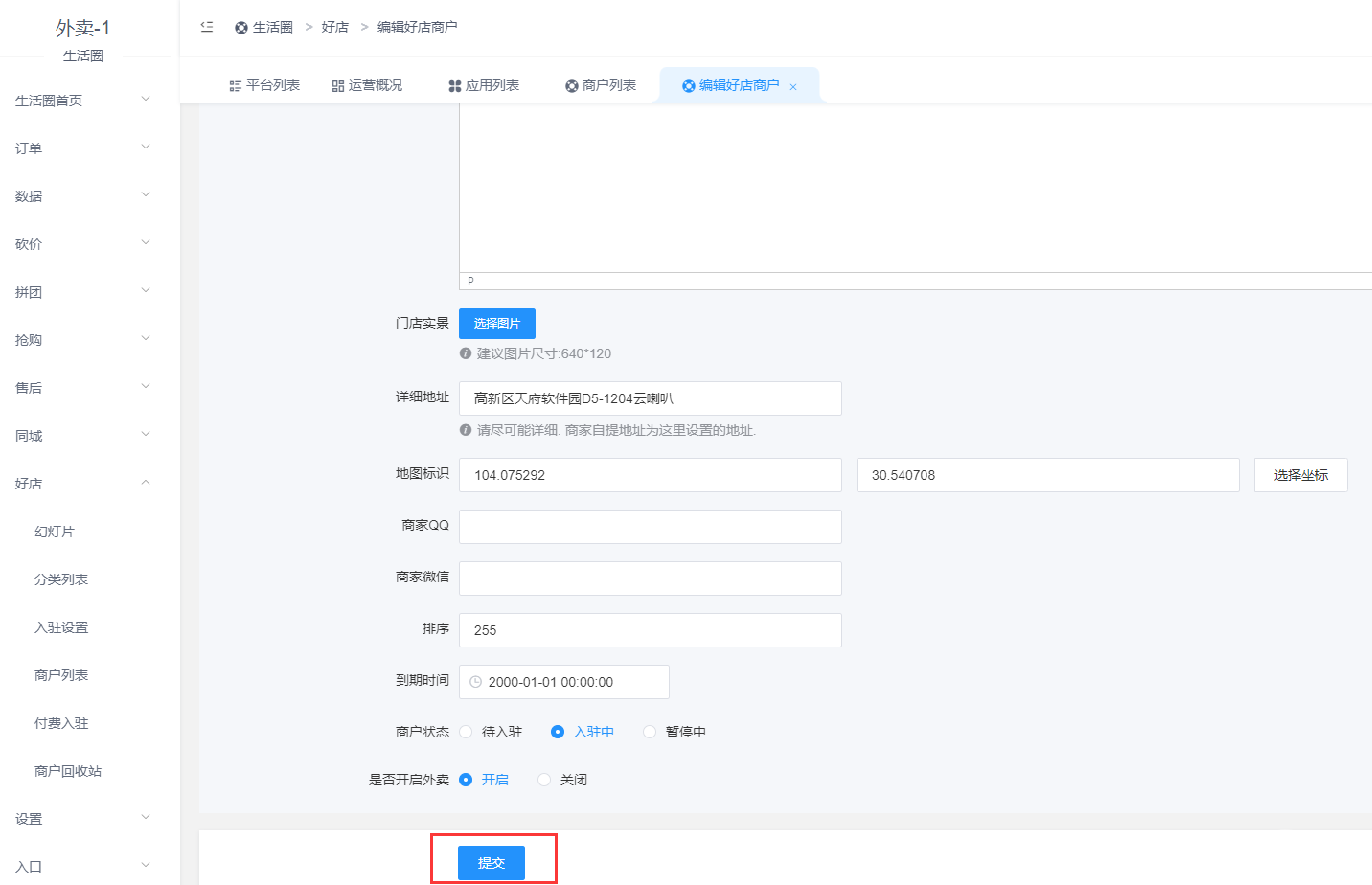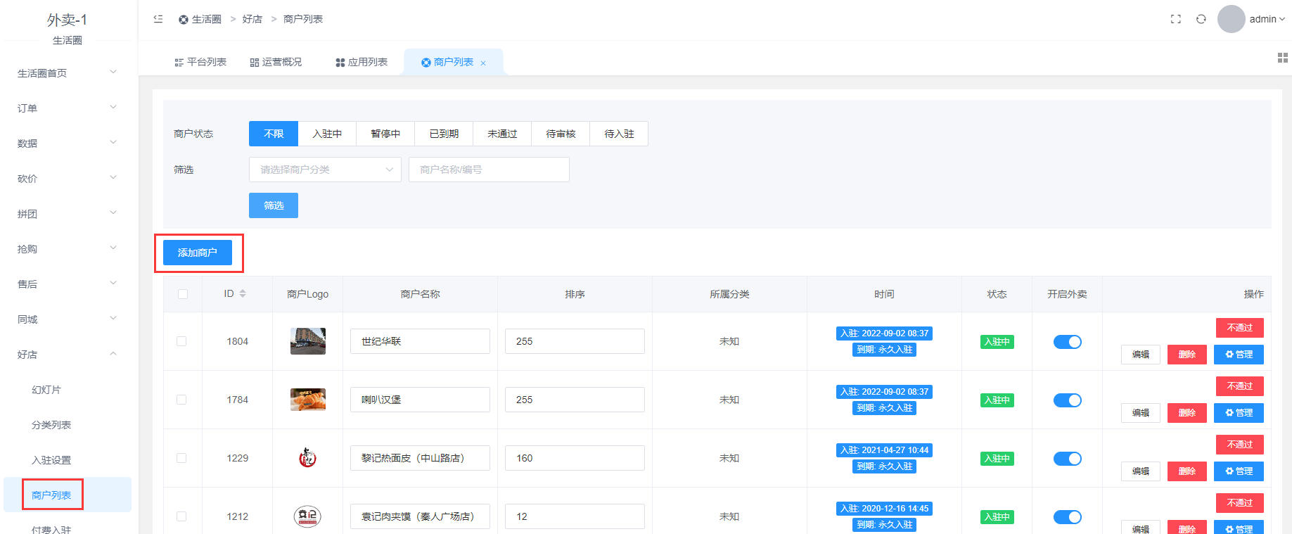 有两种方式: 1.商户自己入驻好店,2.后台添加商户
