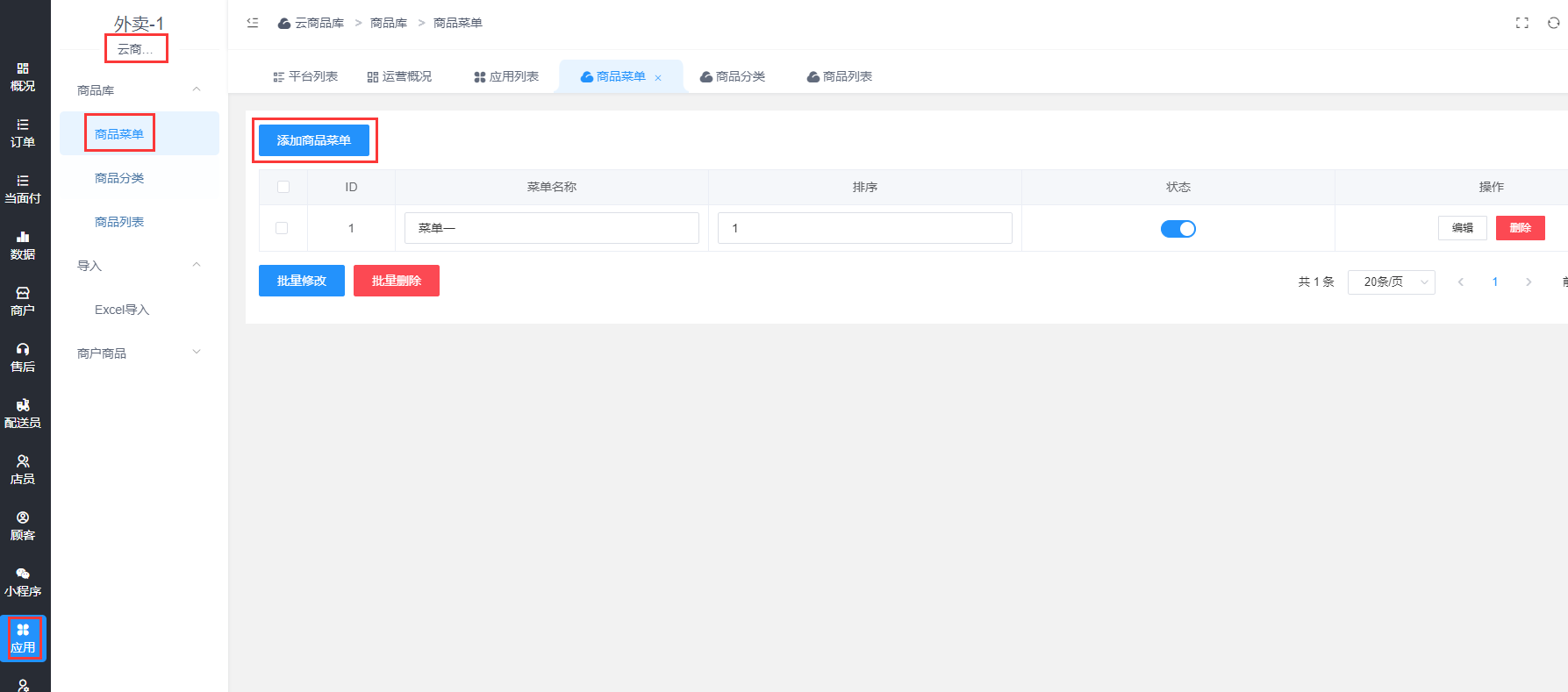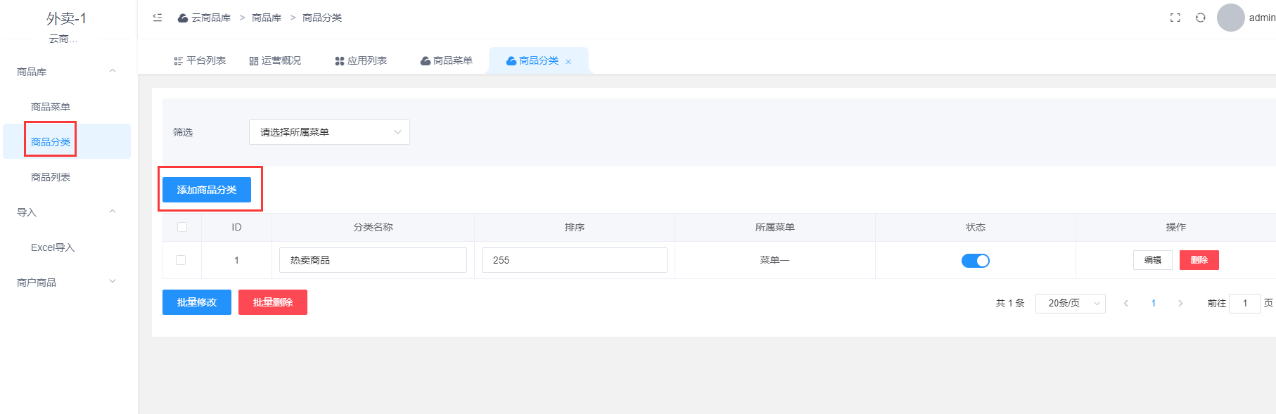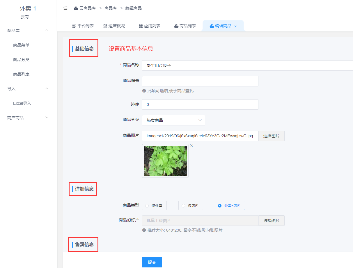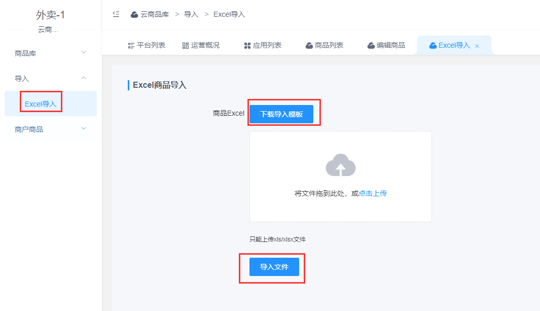 >[info]**功能:总平台可以进行商品库的管理,平台管理员可以手动添加商品、从商户商品导入商品或者从Execl导入商品;各商户后台添加商品时可以选择极速录入云商品库的商品注意:云商品库里本来是没有商品的,需要自己添加。不同的公众号云商品库数据是相通的。**