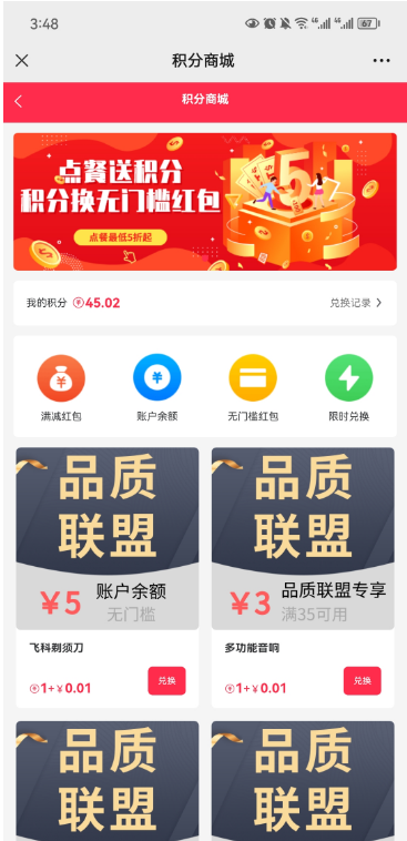>[info] 功能: 在积分商城可以用积分兑换商品