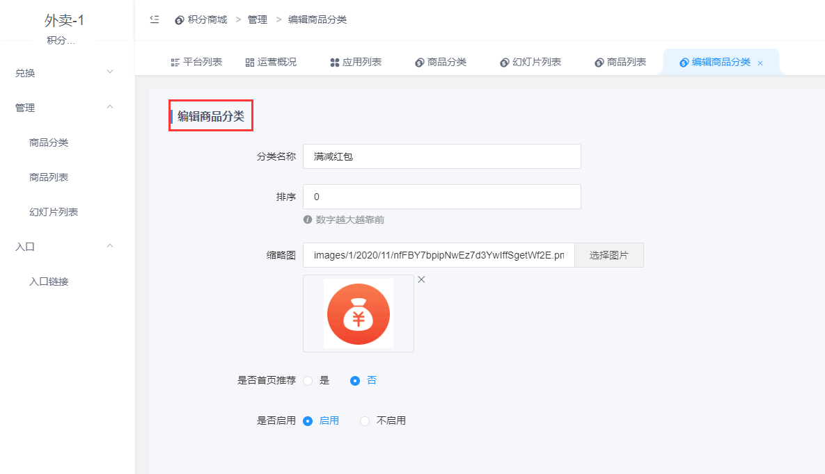 - 平台商品分类