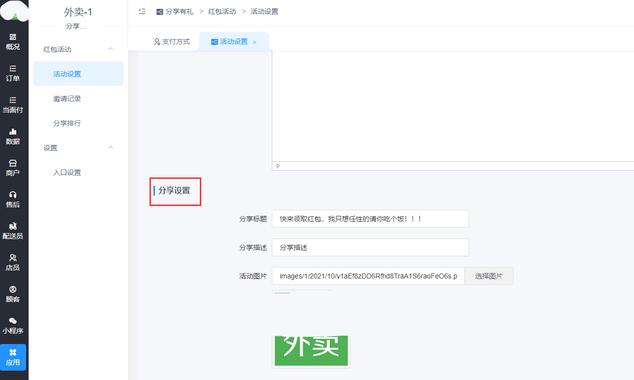 - 随行付后台及外卖后台配置