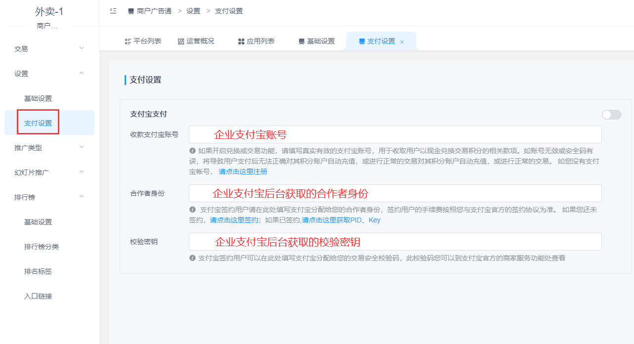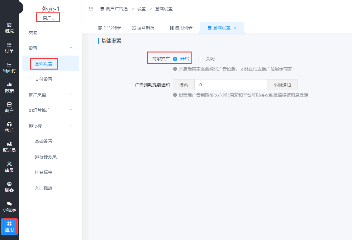 >[danger] 注意:这里开启后,商户端商家推广才会显示