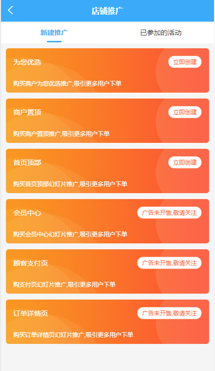 开启为您优选广告位,商户购买广告位后是自动开启的