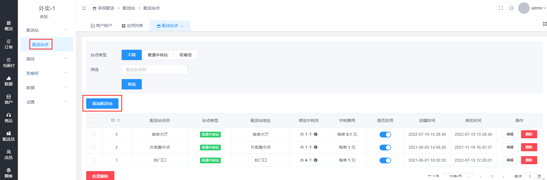 # **1.添加配送站**