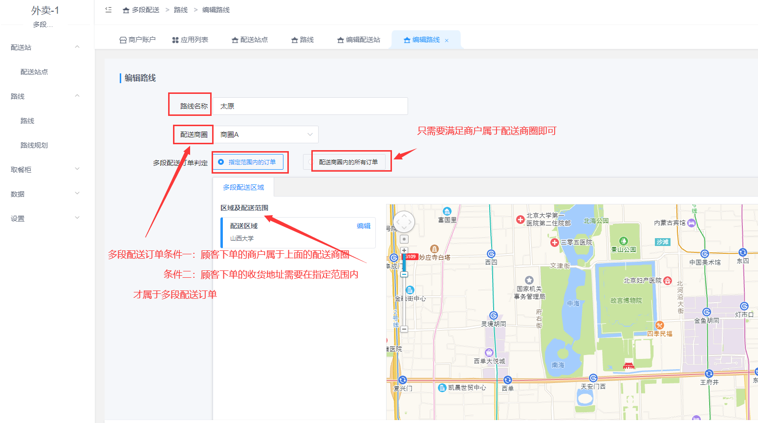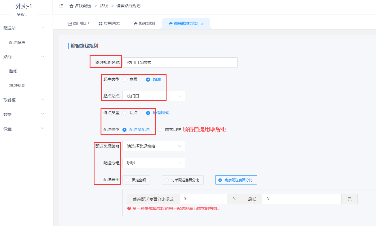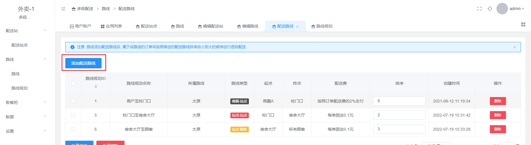 ## **3.2 设置配送路线**