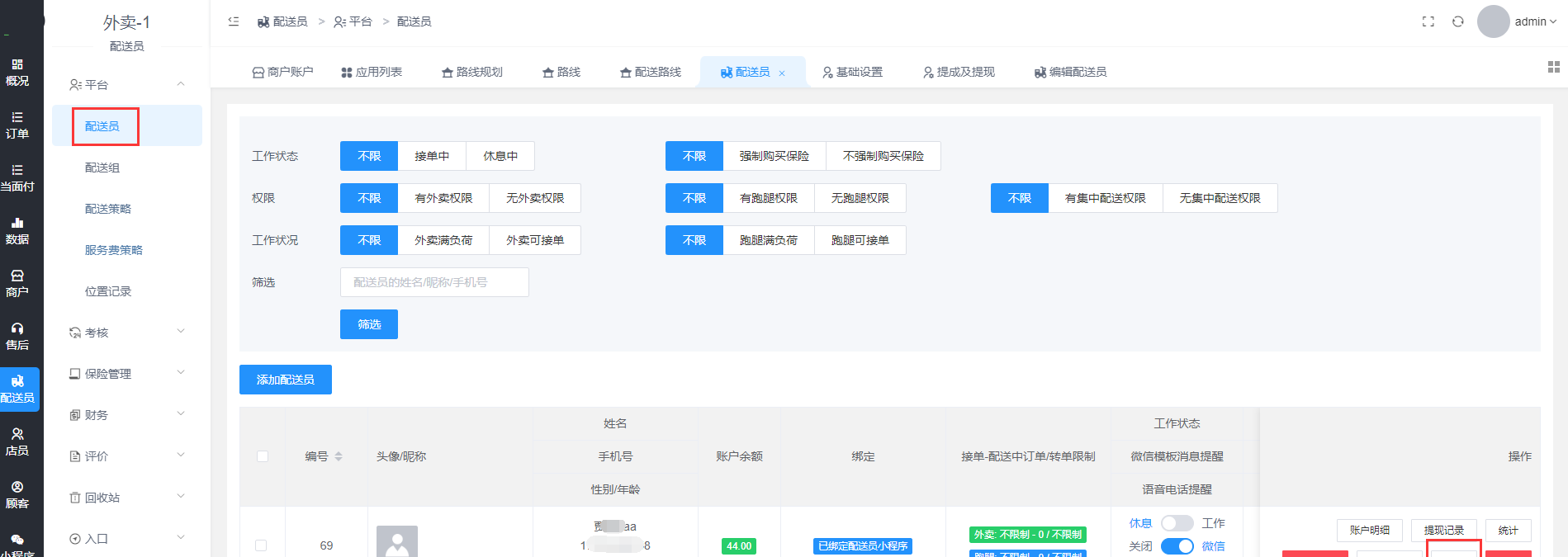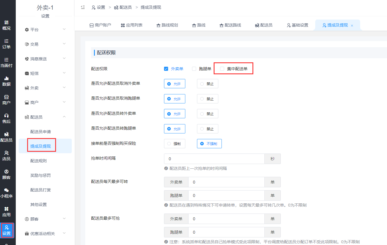 - 配送员提成及提现设置
