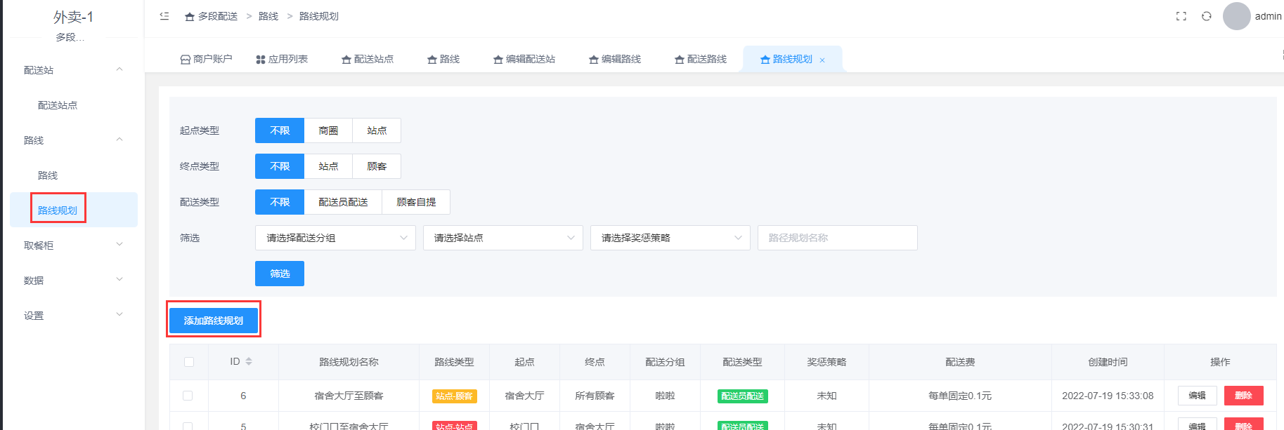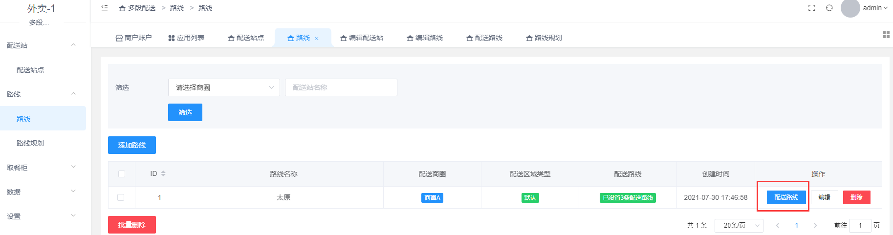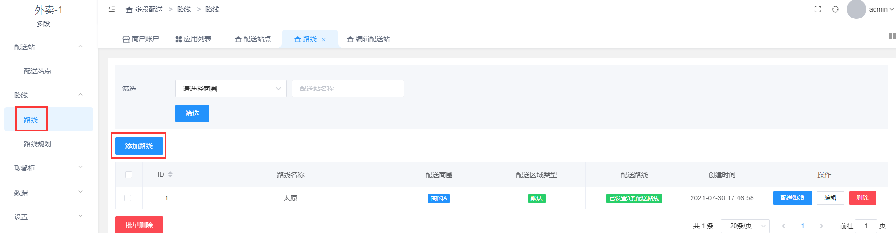 点击配送路线-添加配送路线