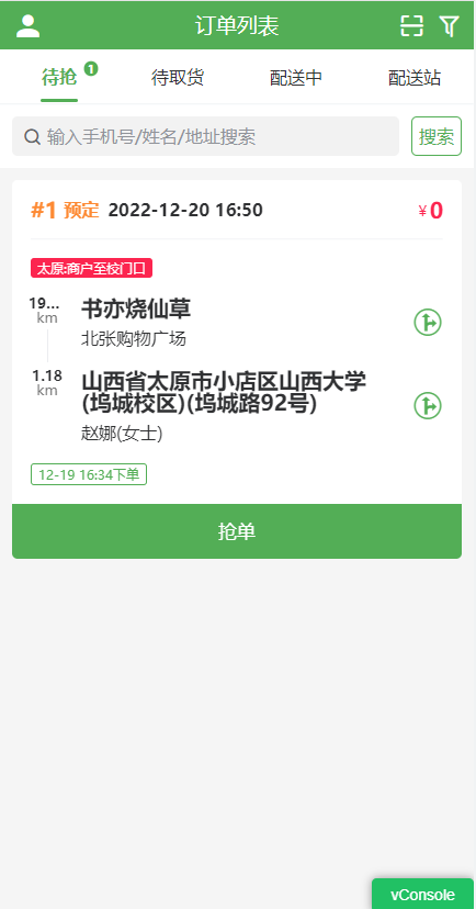 # **5.顾客下多段配送订单,配送员接单**