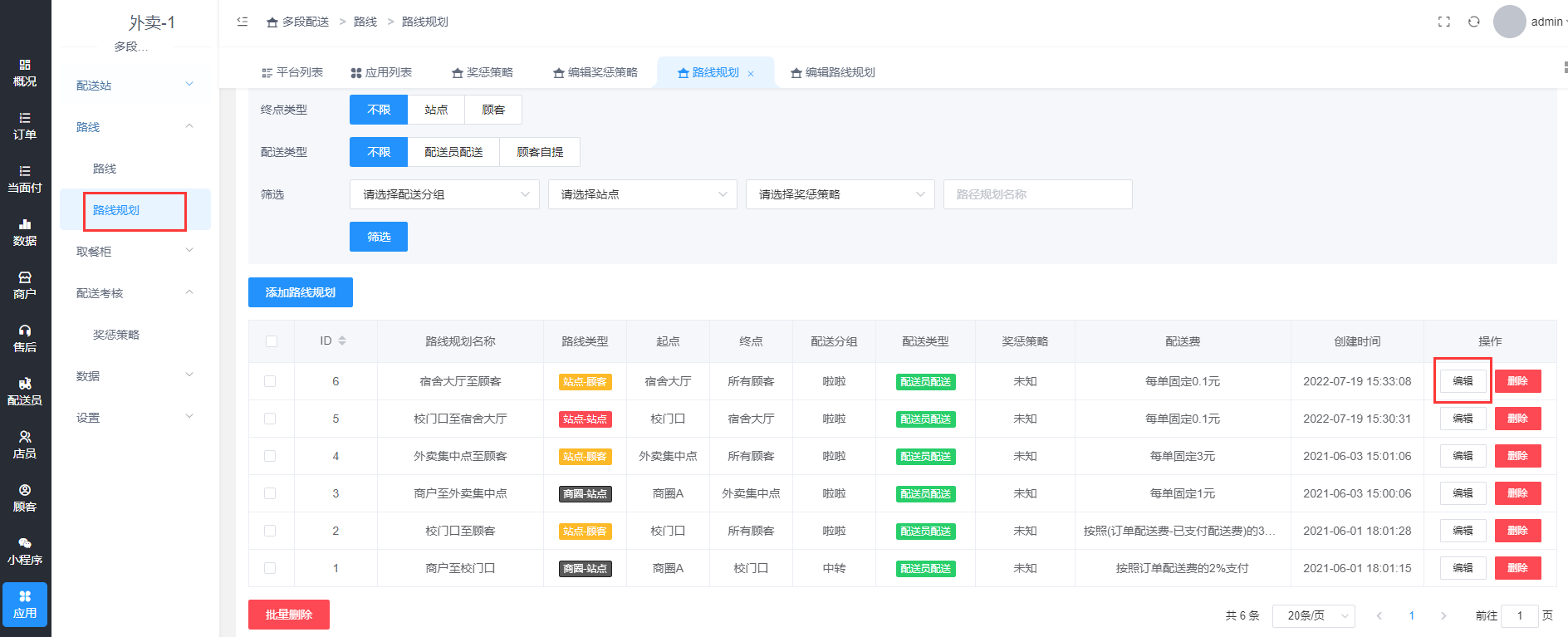 应用-多段配送-路线-路线规划-编辑,绑定奖惩策略