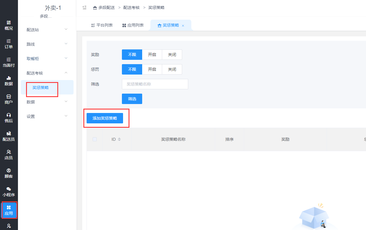 应用-多段配送-配送考核-奖惩策略,添加奖惩策略