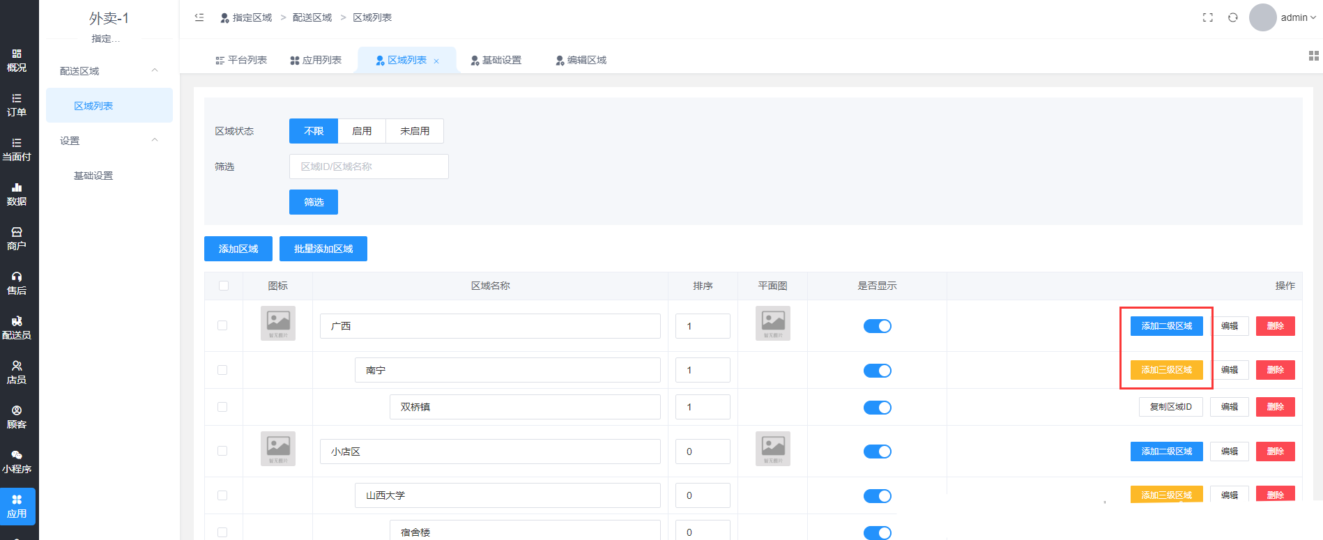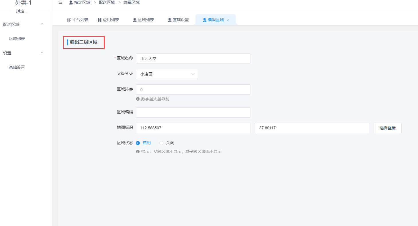 设置二级或者三级区域的话,可以添加二级或三级区域