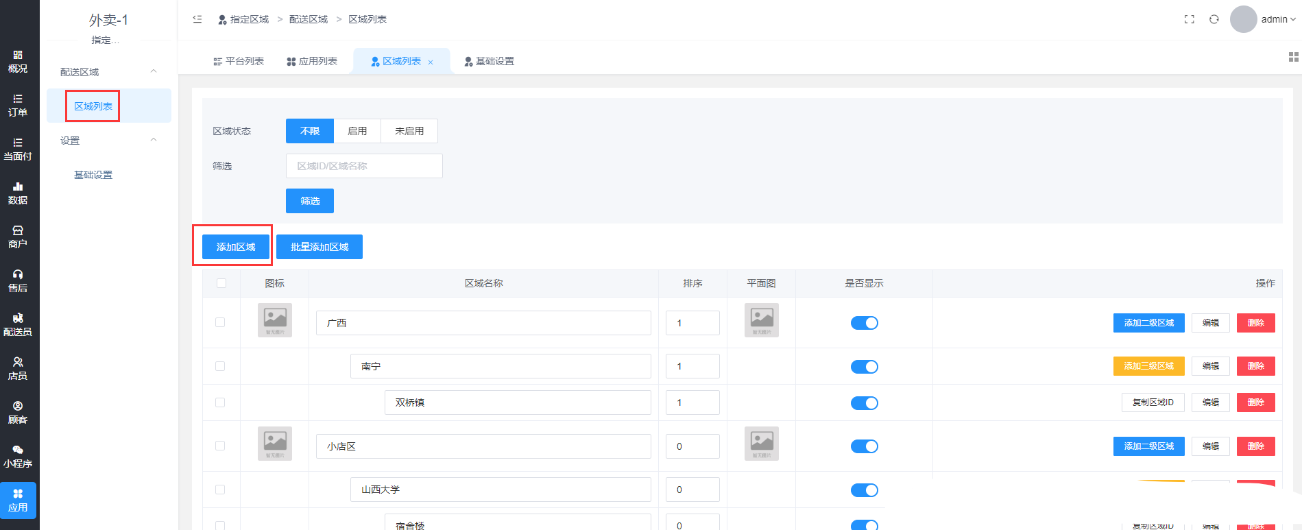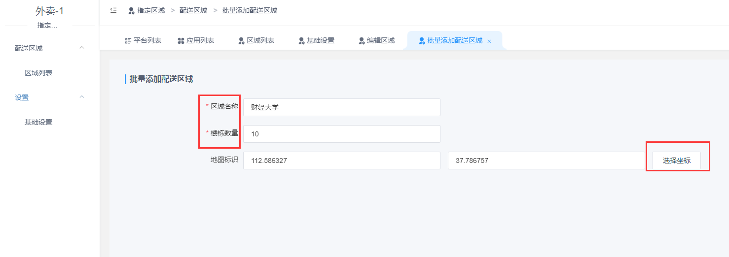## **2.2 批量添加区域**