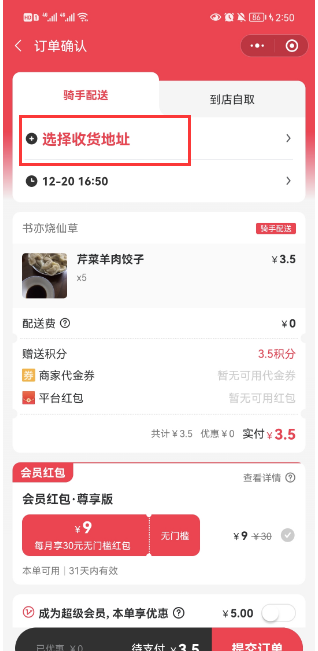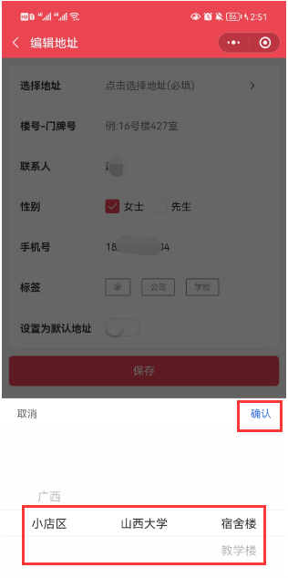 # **4.顾客下单选择指定区域地址**