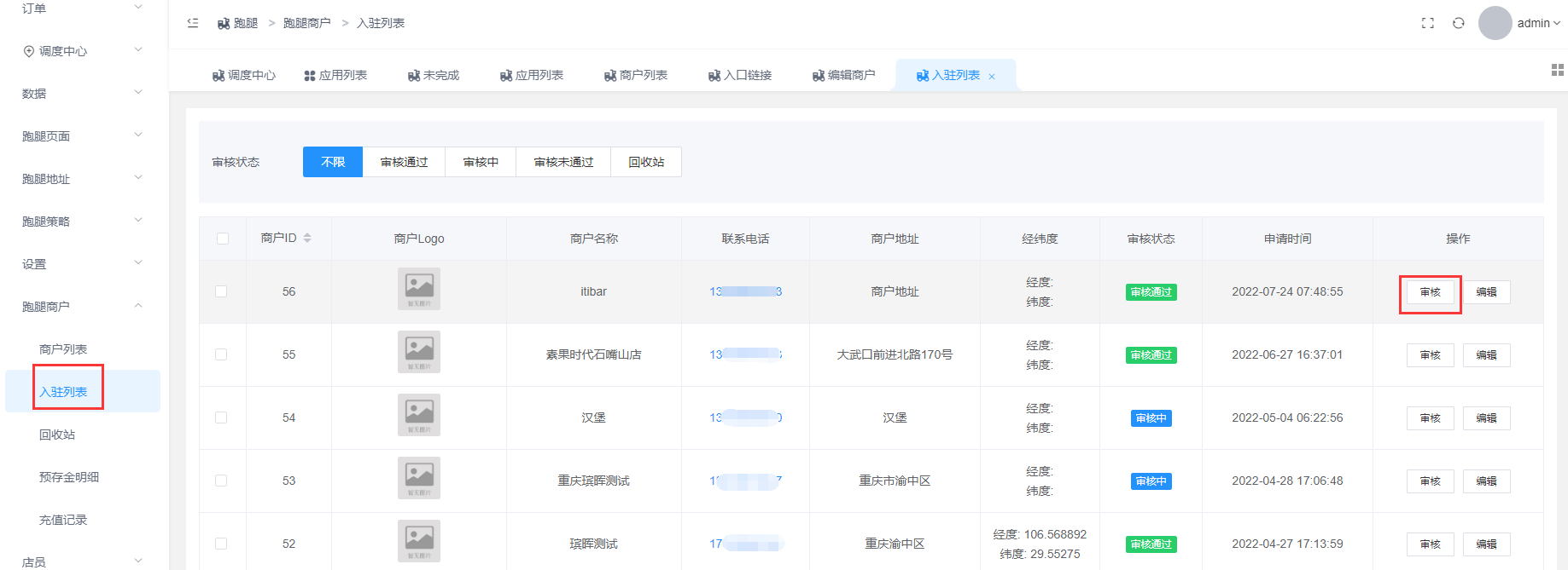商户自己入驻的,可以操作审核