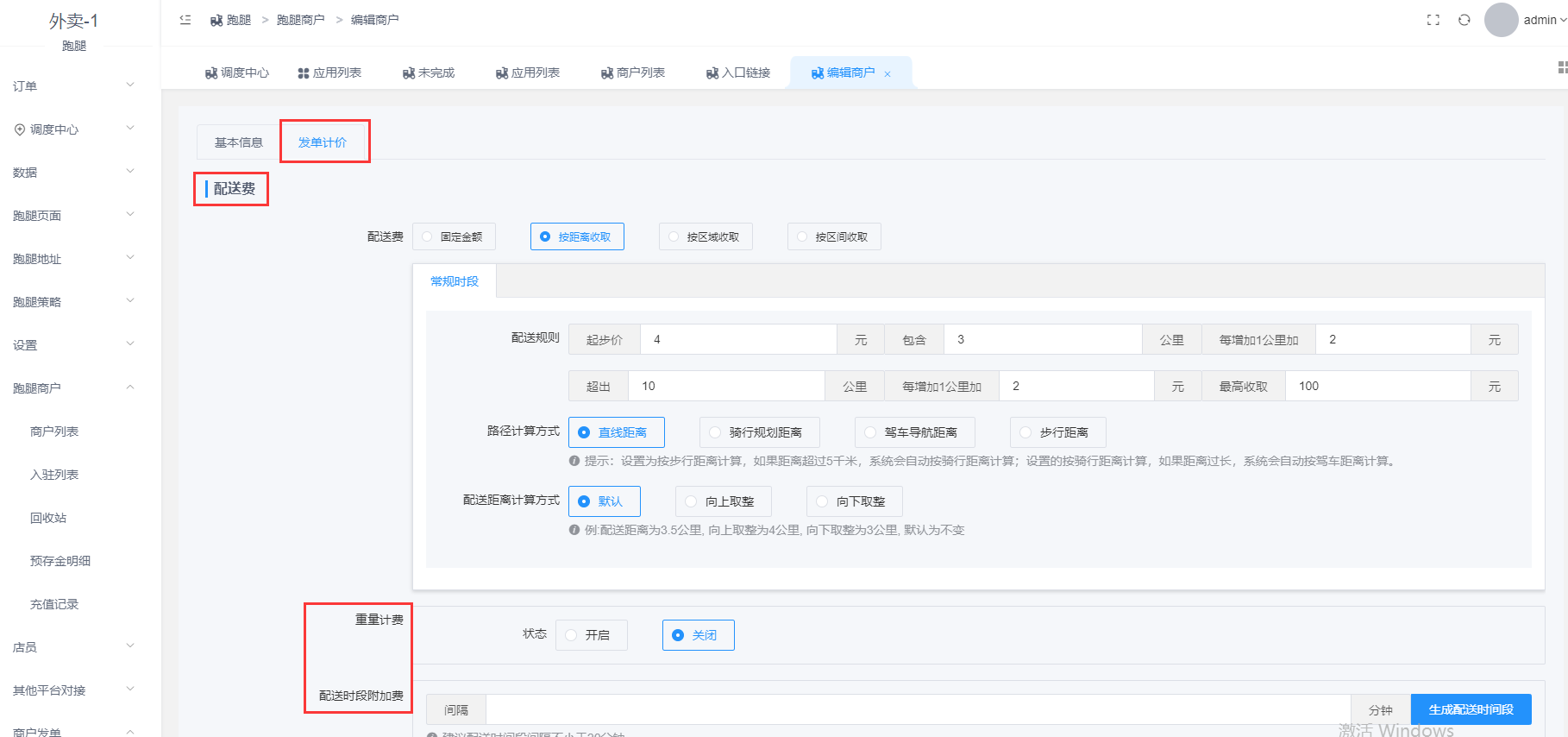 设置商户发单计价