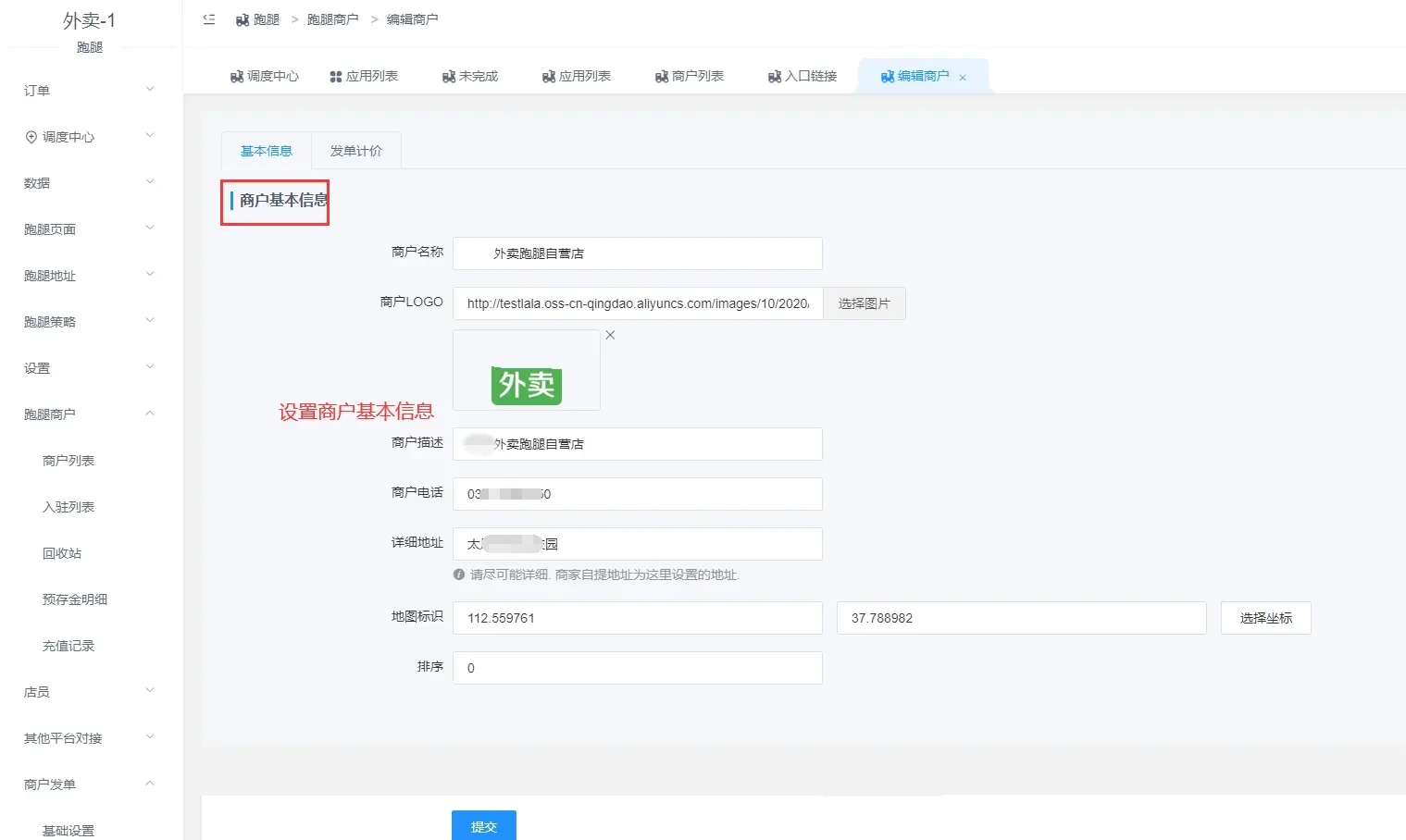 可以自己入驻,或者后台添加跑腿商户