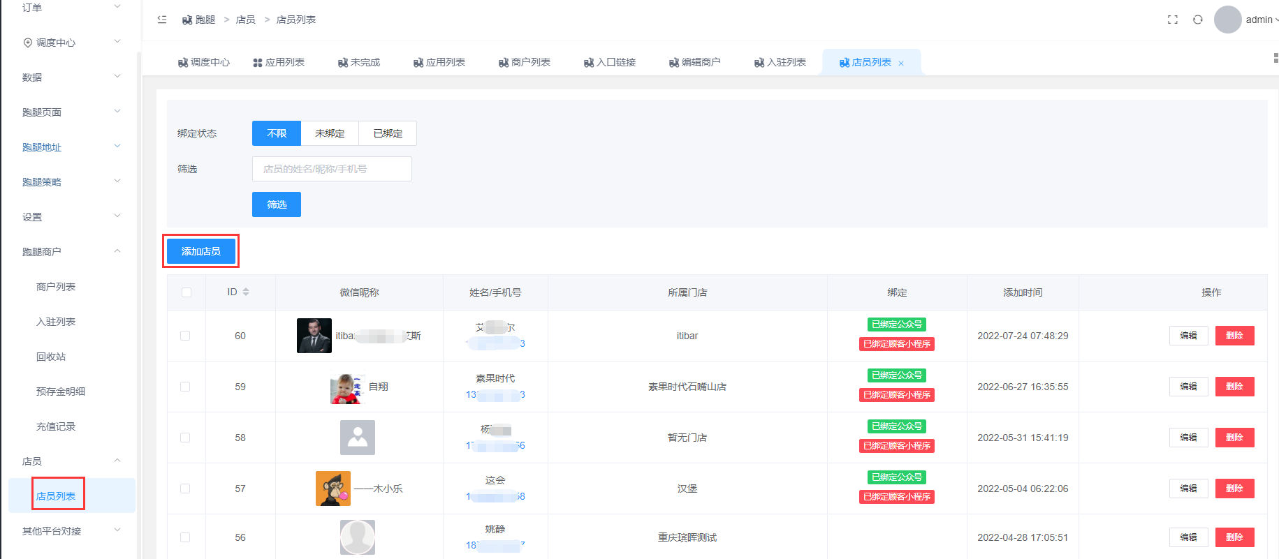 ## **1.3 绑定店员,设为管理员**