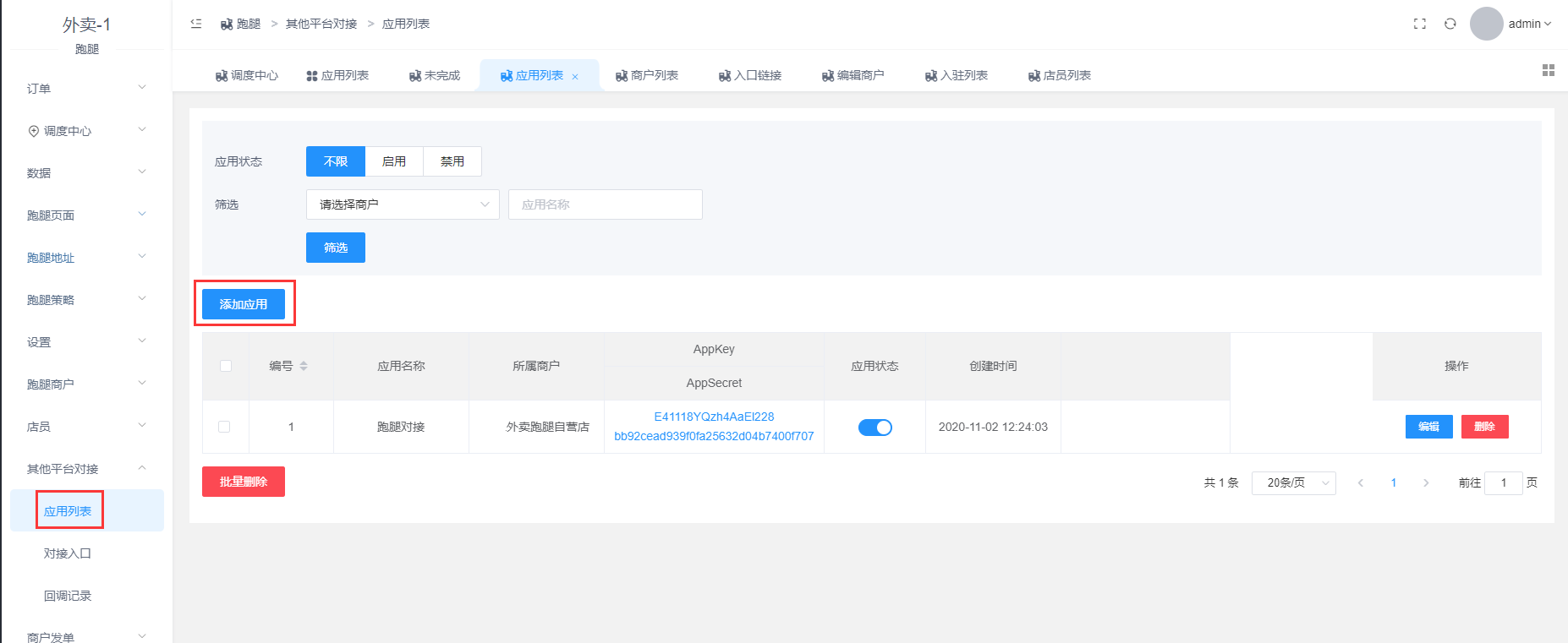 每个商户都需要对应添加应用