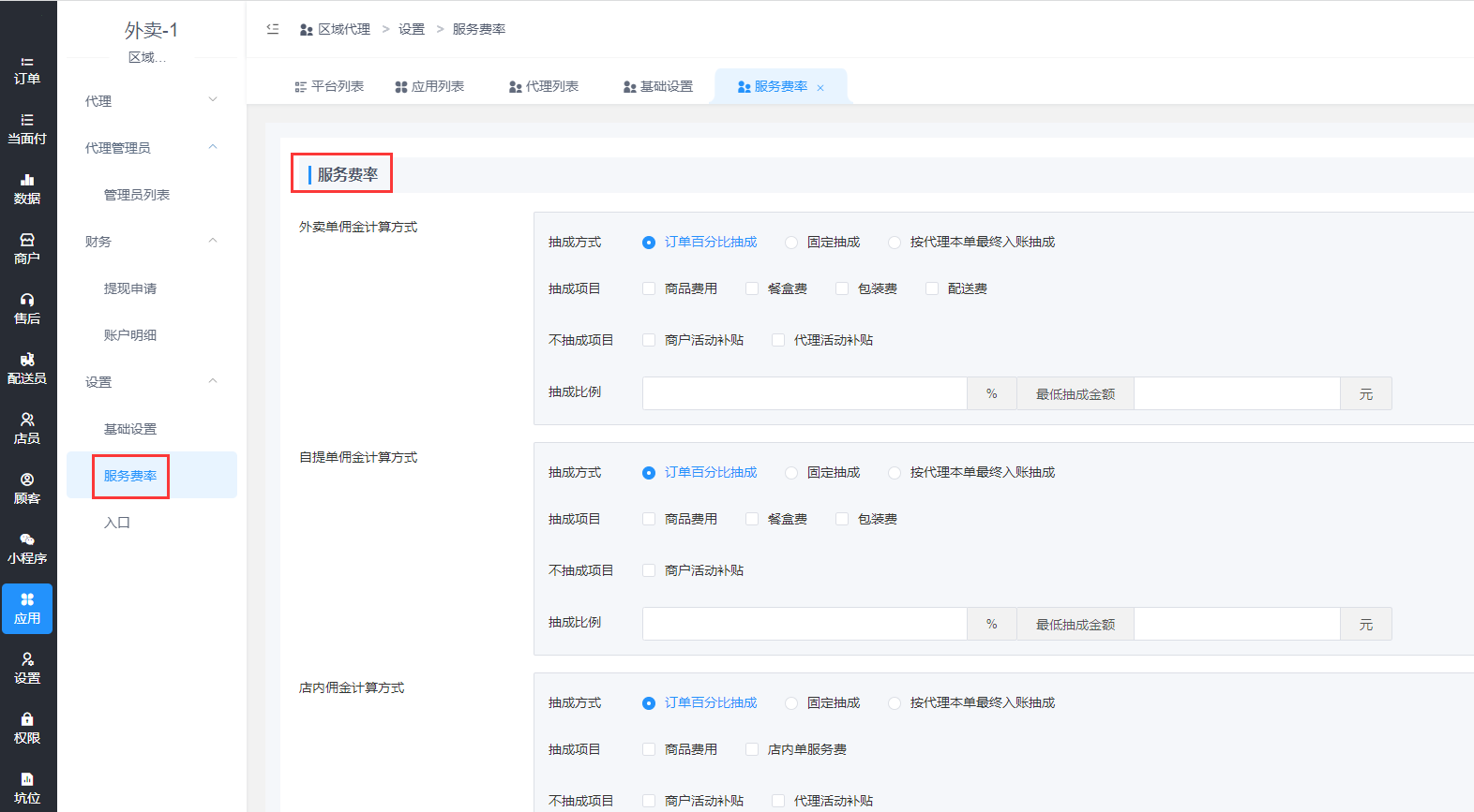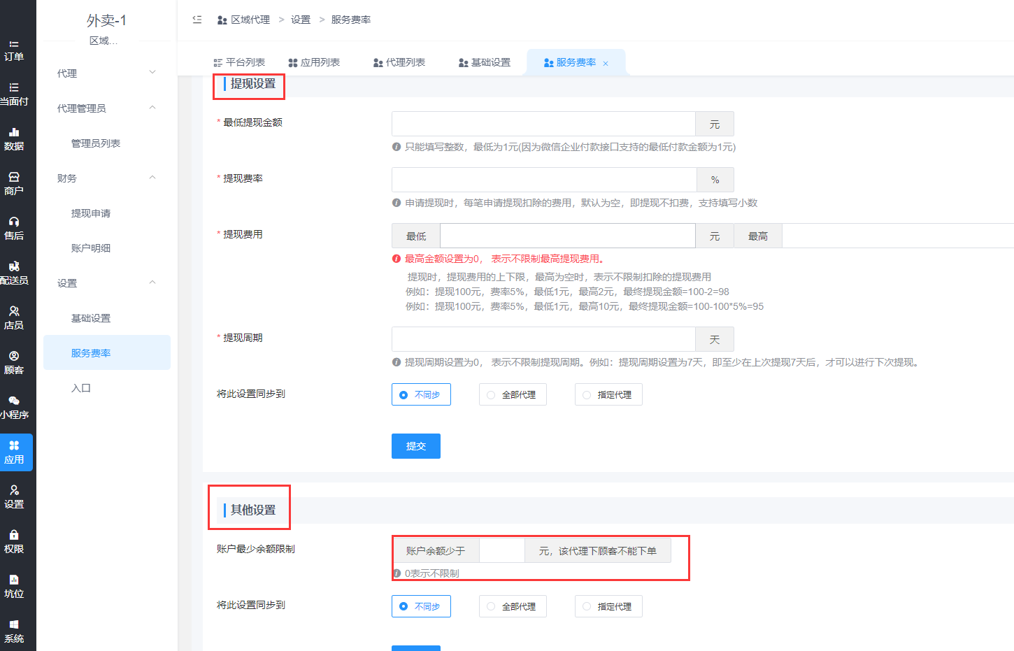 - 配送员提成及提现设置